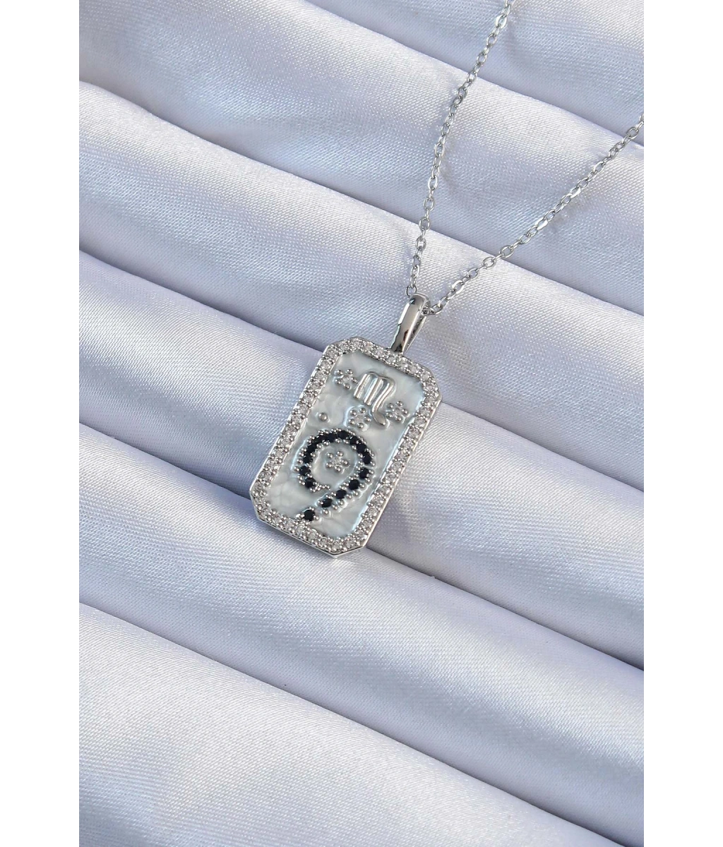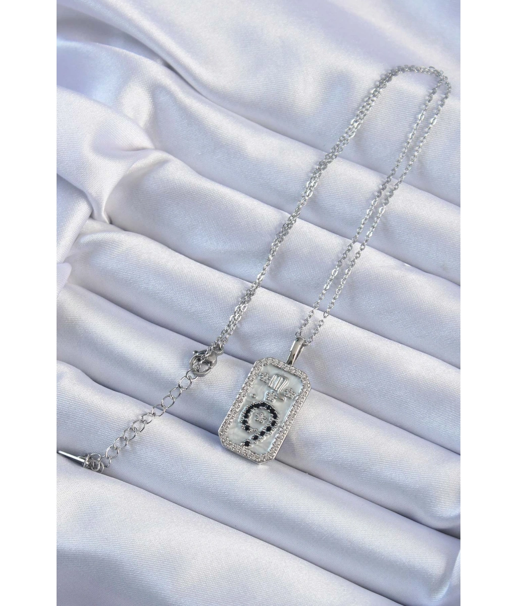 Shoecide Gümüş Renkli Zirkon Taşlı Karma Yazılı Kolye