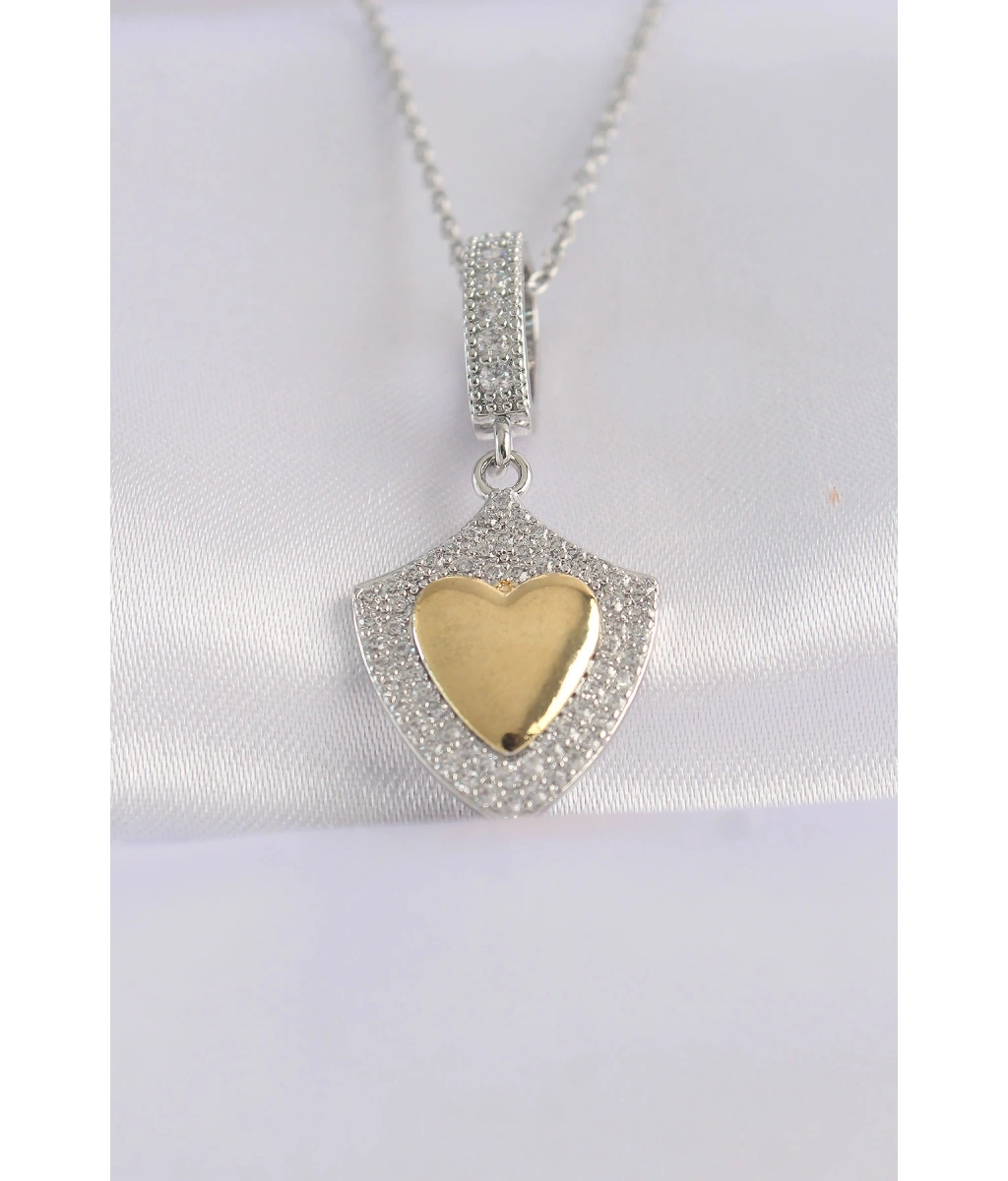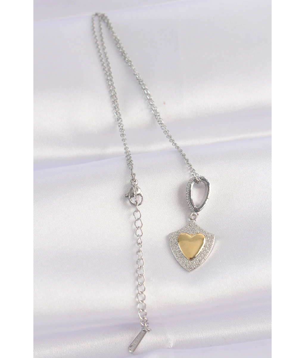 Shoecide 316l Çelik Zincir Gümüş Renk Zirkon Taşlı Tasarım Altın Renk Kalp Kolye
