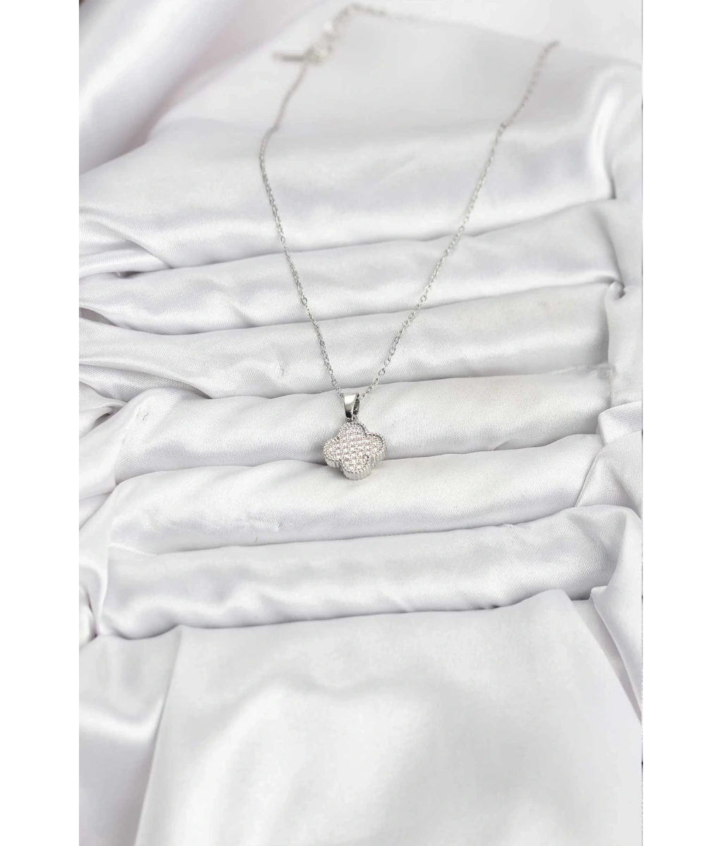 Shoecide 316l Çelik Zincir Gümüş Renk Zirkon Taşlı Yonca Model Kadın Kolye