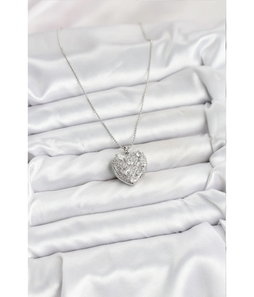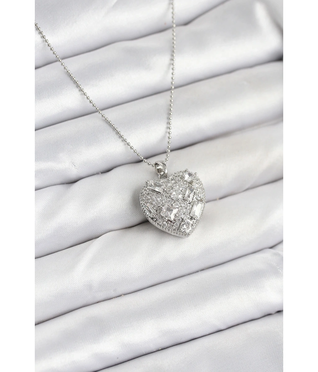 Shoecide 316l Çelik Zincir Gümüş Zirkon Taşlı Kalpli Kadın Kolye