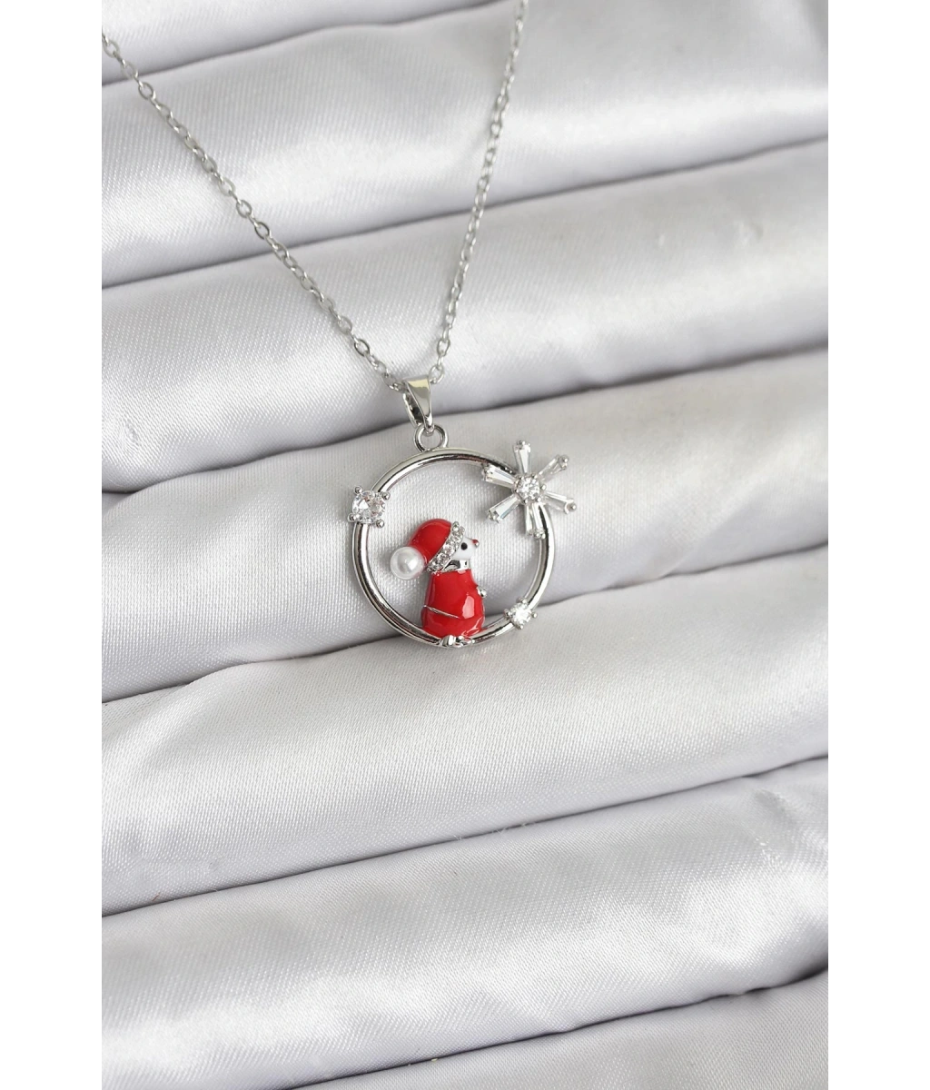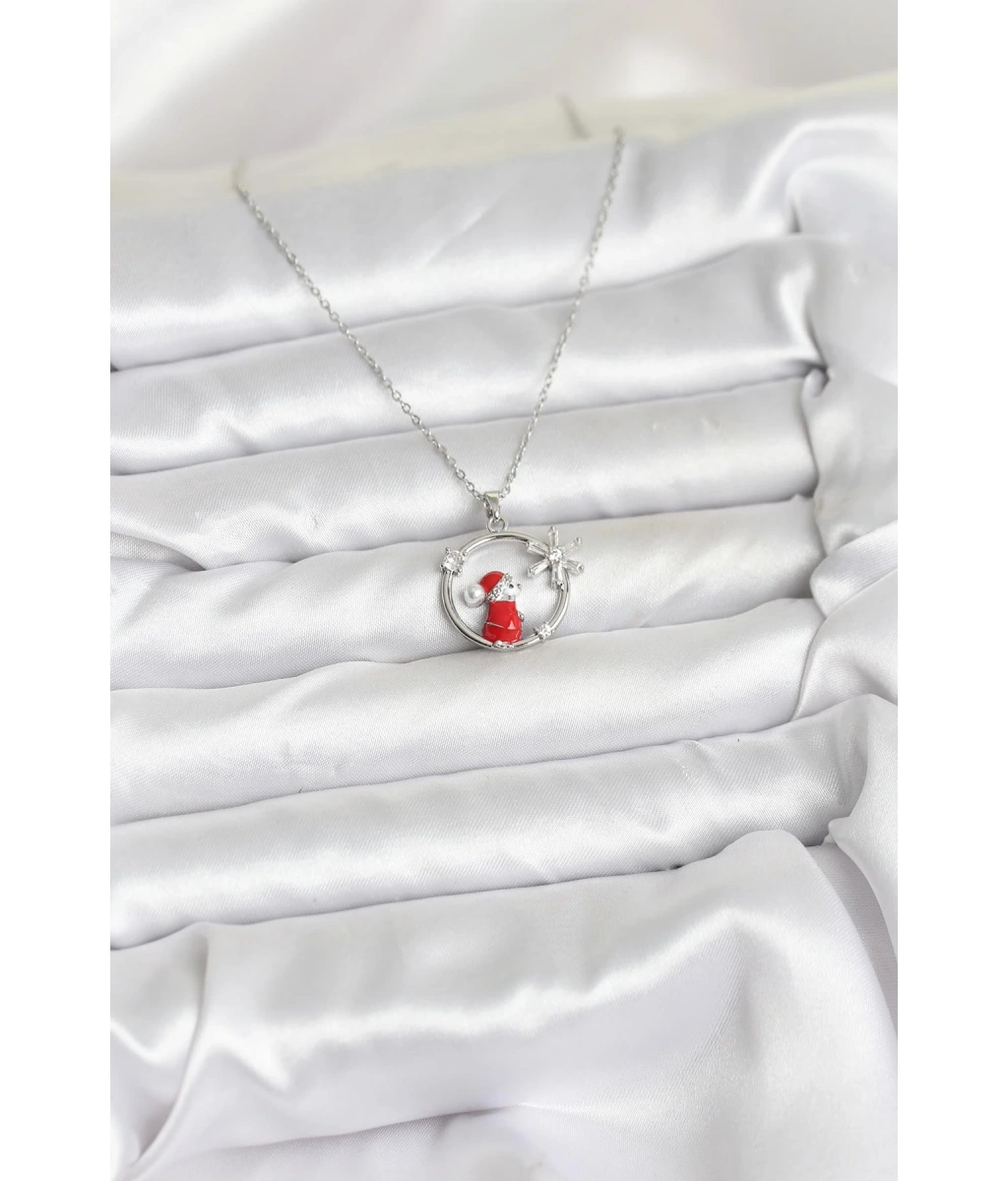 Shoecide 316l Çelik Zincir Gümüş Renk Kardan Adam Figürlü Yılbaşı Temalı Kadın Kolye