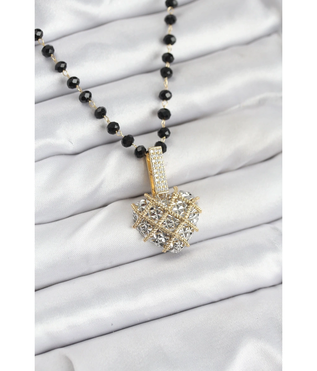 Shoecide 316l Çelik Zincir Kristal Boncuklu Kalpli Kadın Kolye