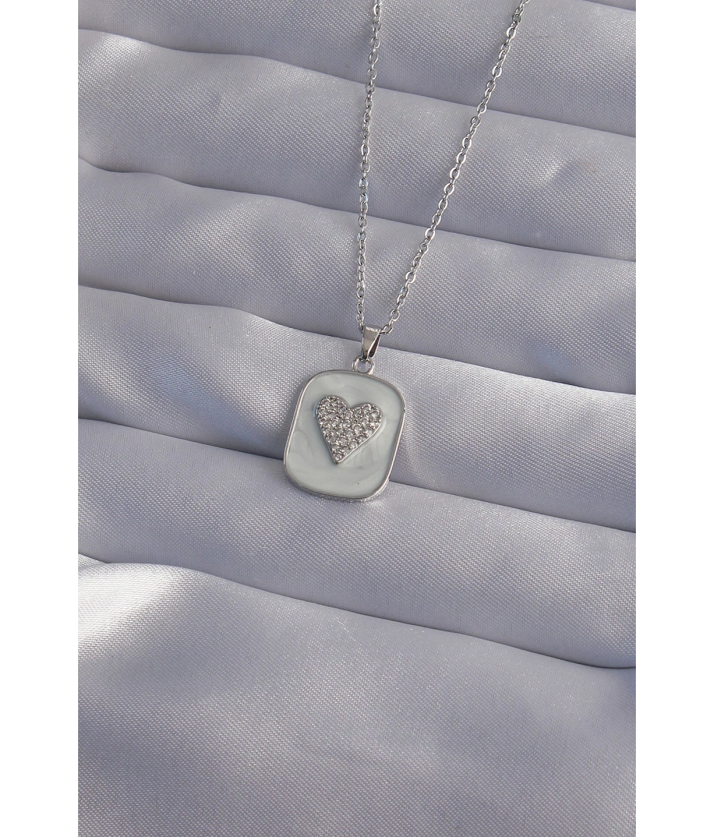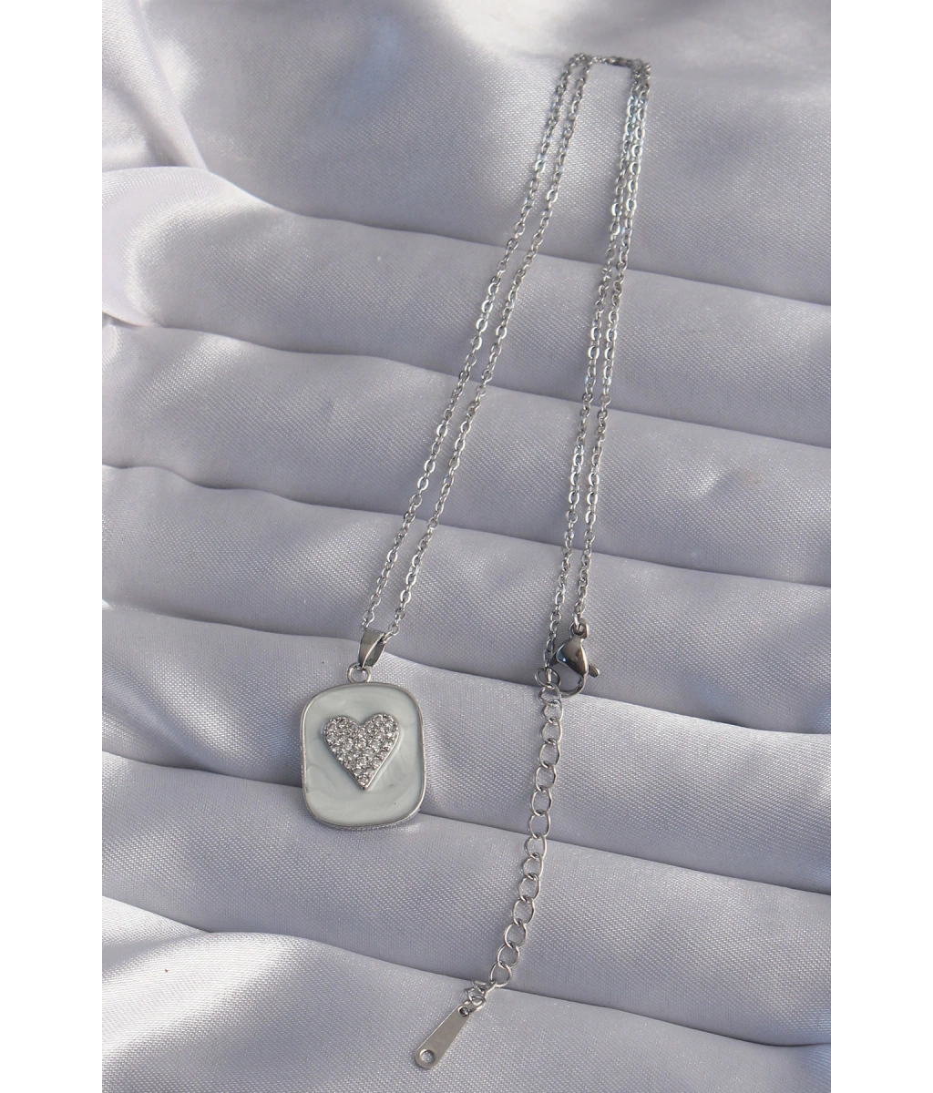 Shoecide 316l Çelik Zincir Mermer Desenli Gümüş Renk Zirkon Taşlı Kalp Model Kolye
