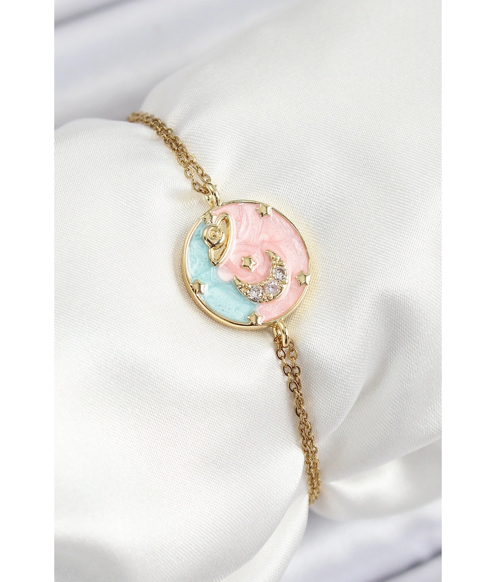 Shoecide Gezegen Charmlı Gold Renk Pirinç Kadın Bileklik