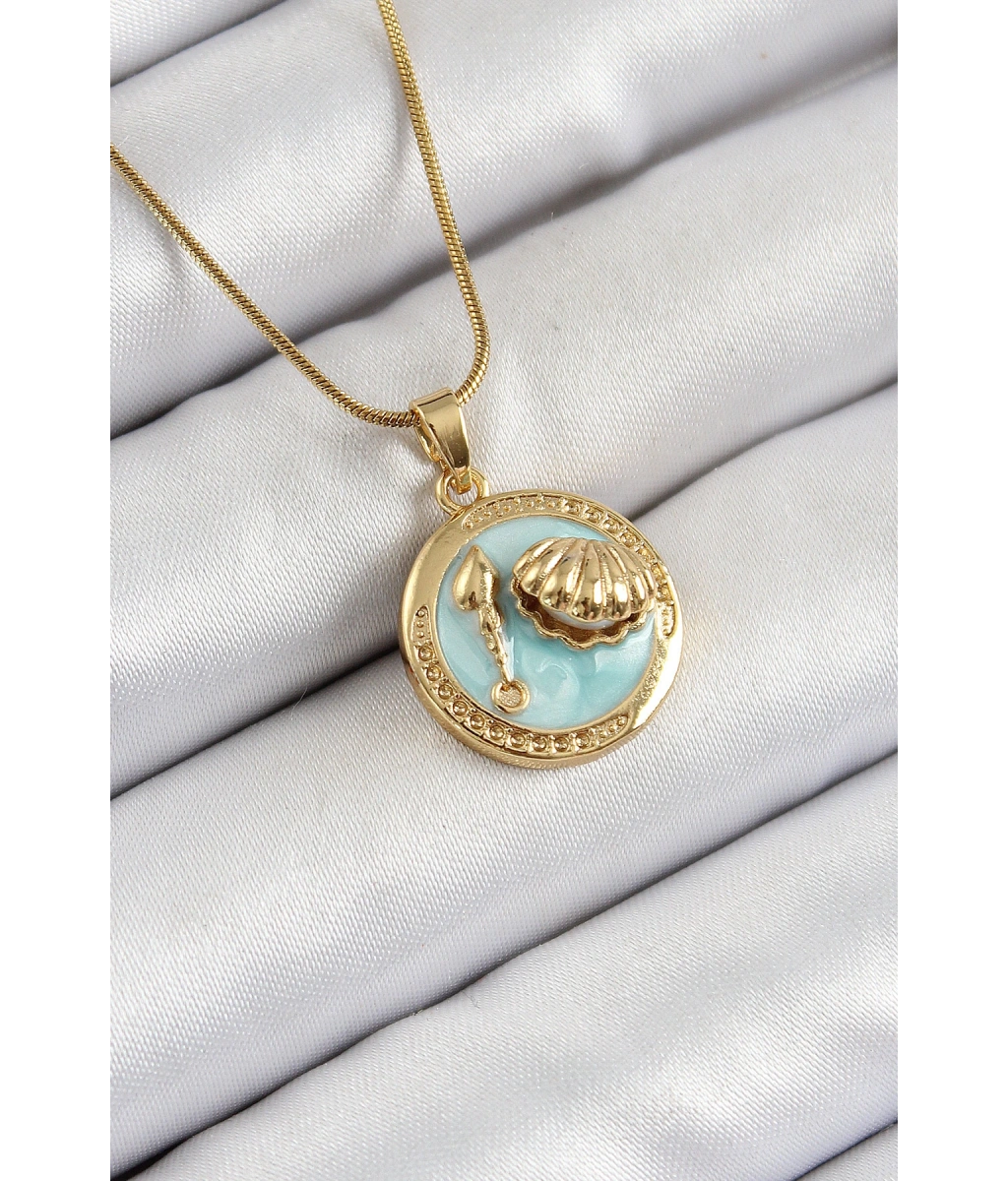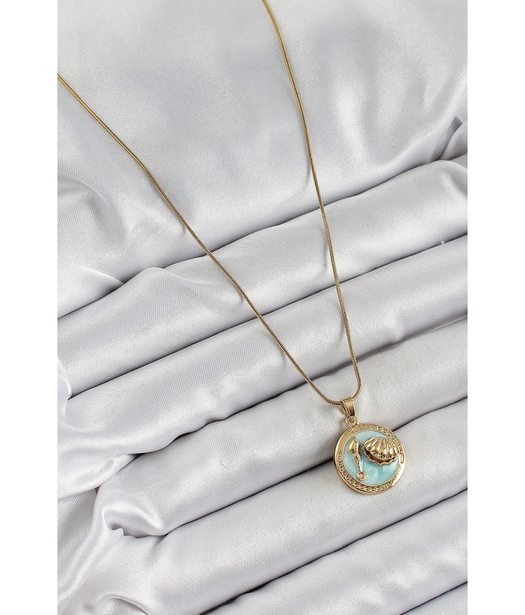 Shoecide 316l Çelik Zincir Turkuaz Mineli Sanatsal Portre İstiridye Model Gold Renk Kadın Kolye