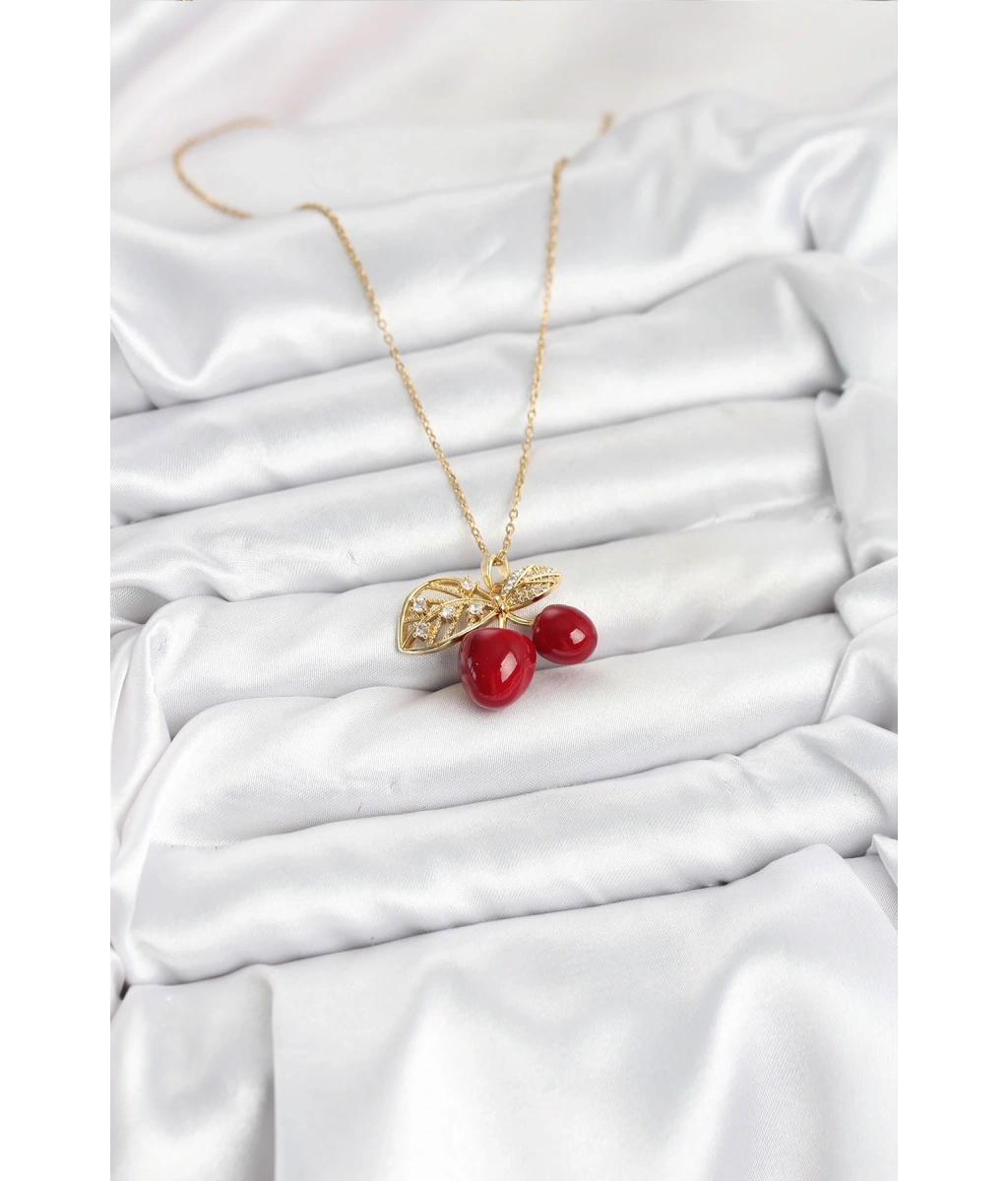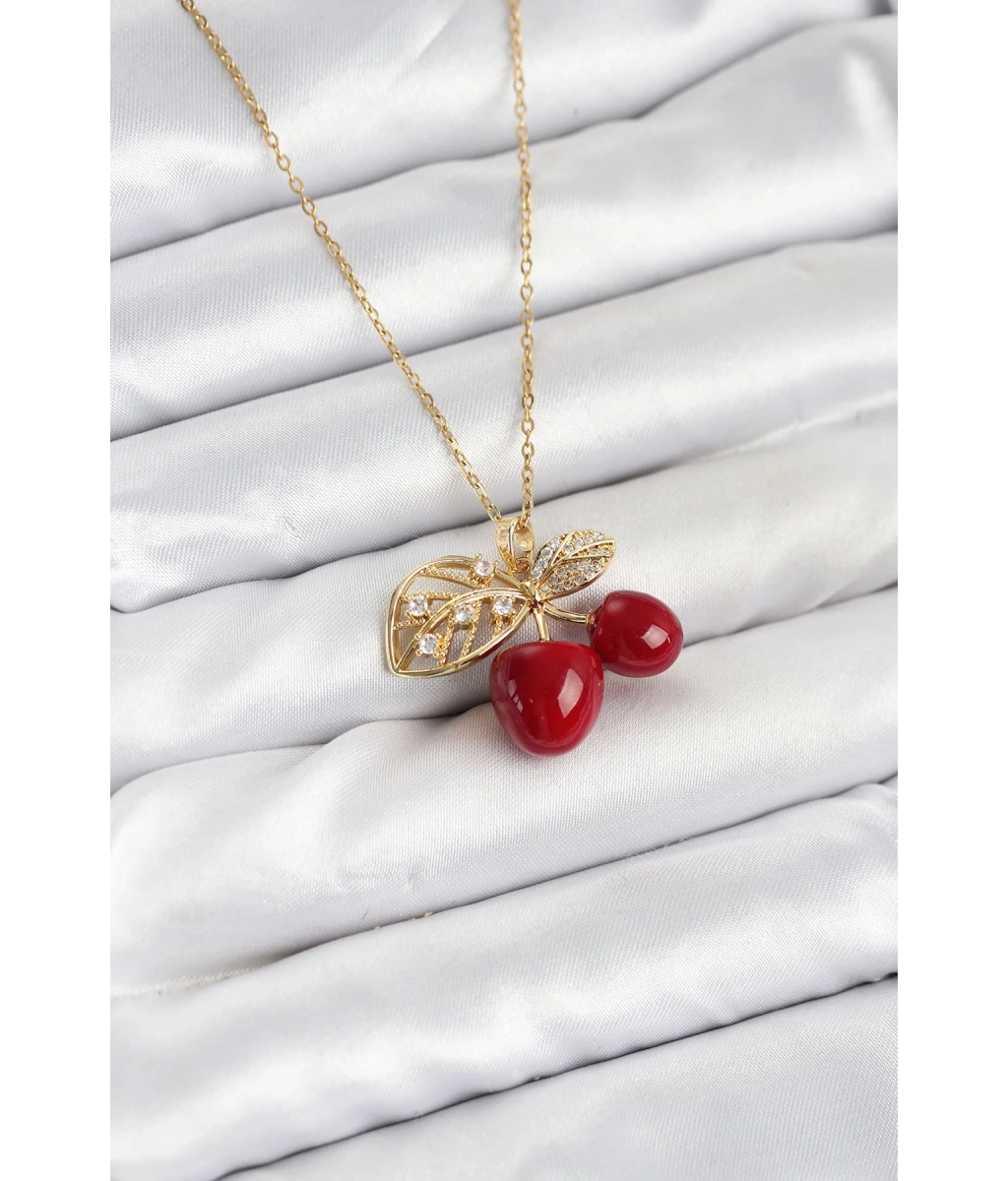 Shoecide 316l Çelik Zincir Gold Renk Kiraz Model Kadın Kolye
