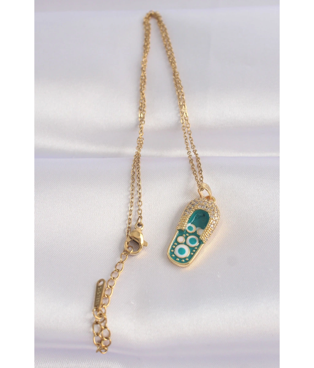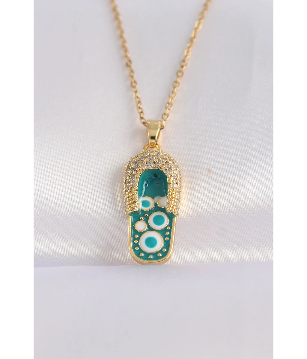Shoecide 316l Çelik Zincir Zirkon Taşlı Altın Renk Nazarlı Terlik Tasarımlı Kolye