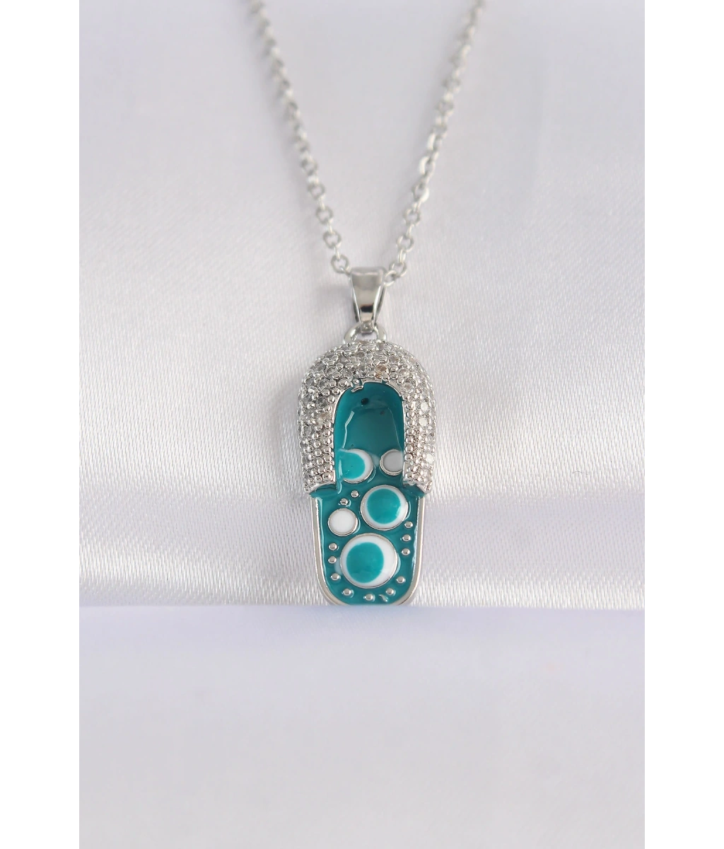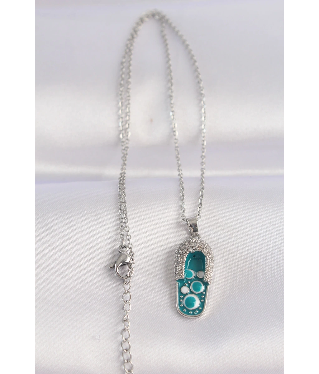 Shoecide 316l Çelik Zincir Zirkon Taşlı Gümüş Renk Nazarlı Terlik Tasarımlı Kolye