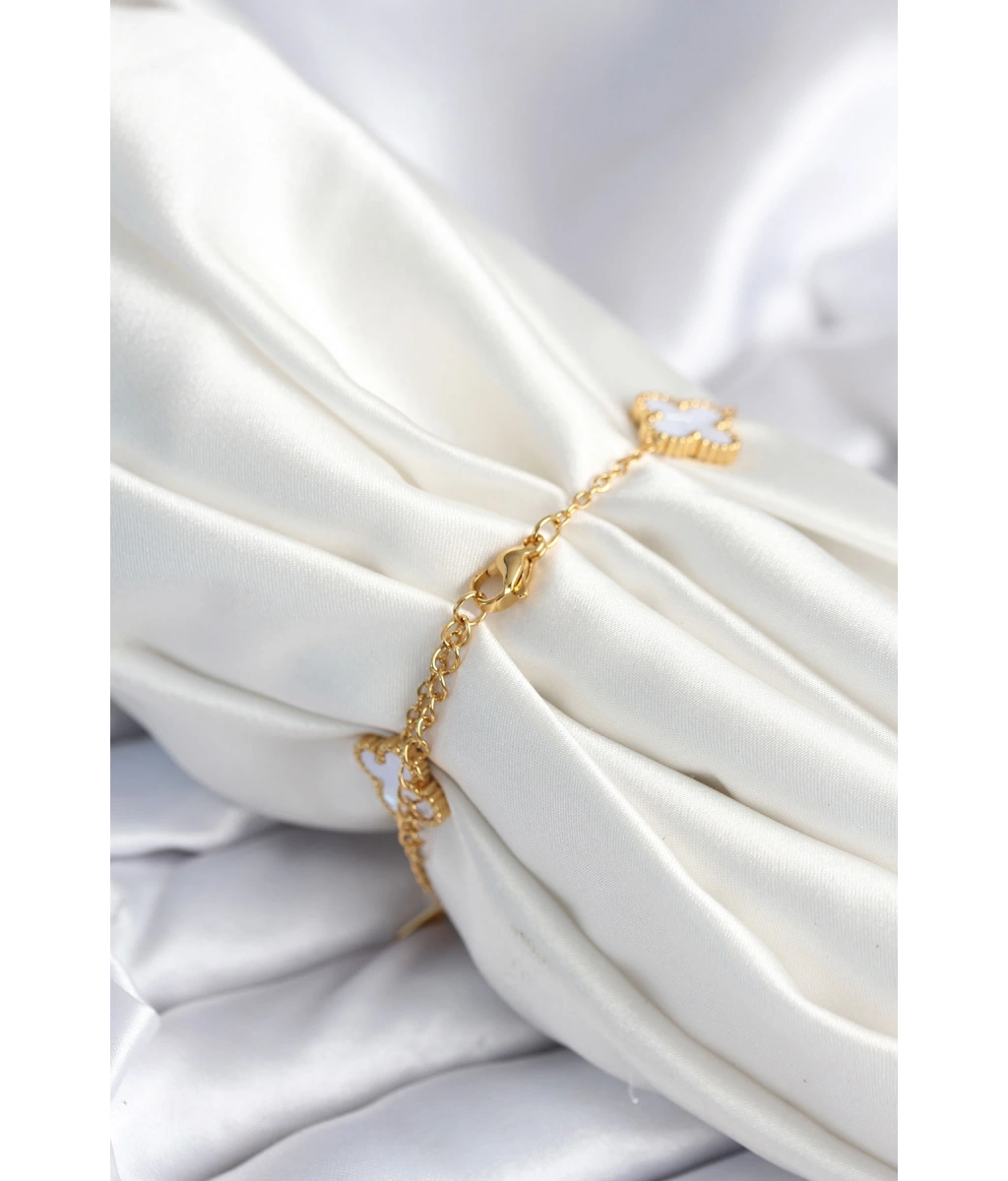 Shoecide Çiçek Ve Kelebek Charmlı Gold Renk Pirinç Kadın Bileklik