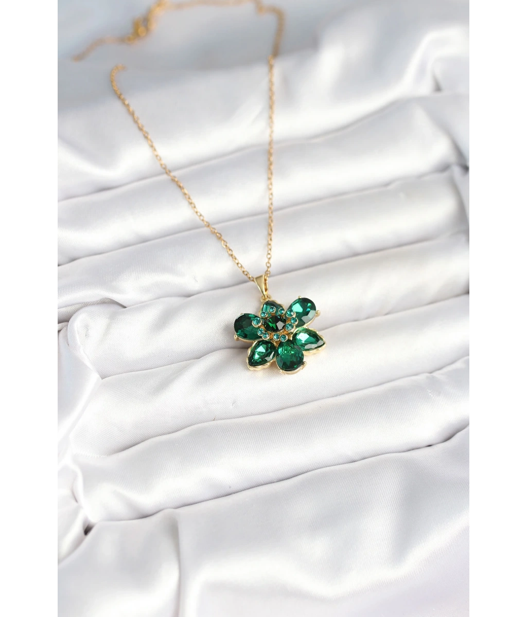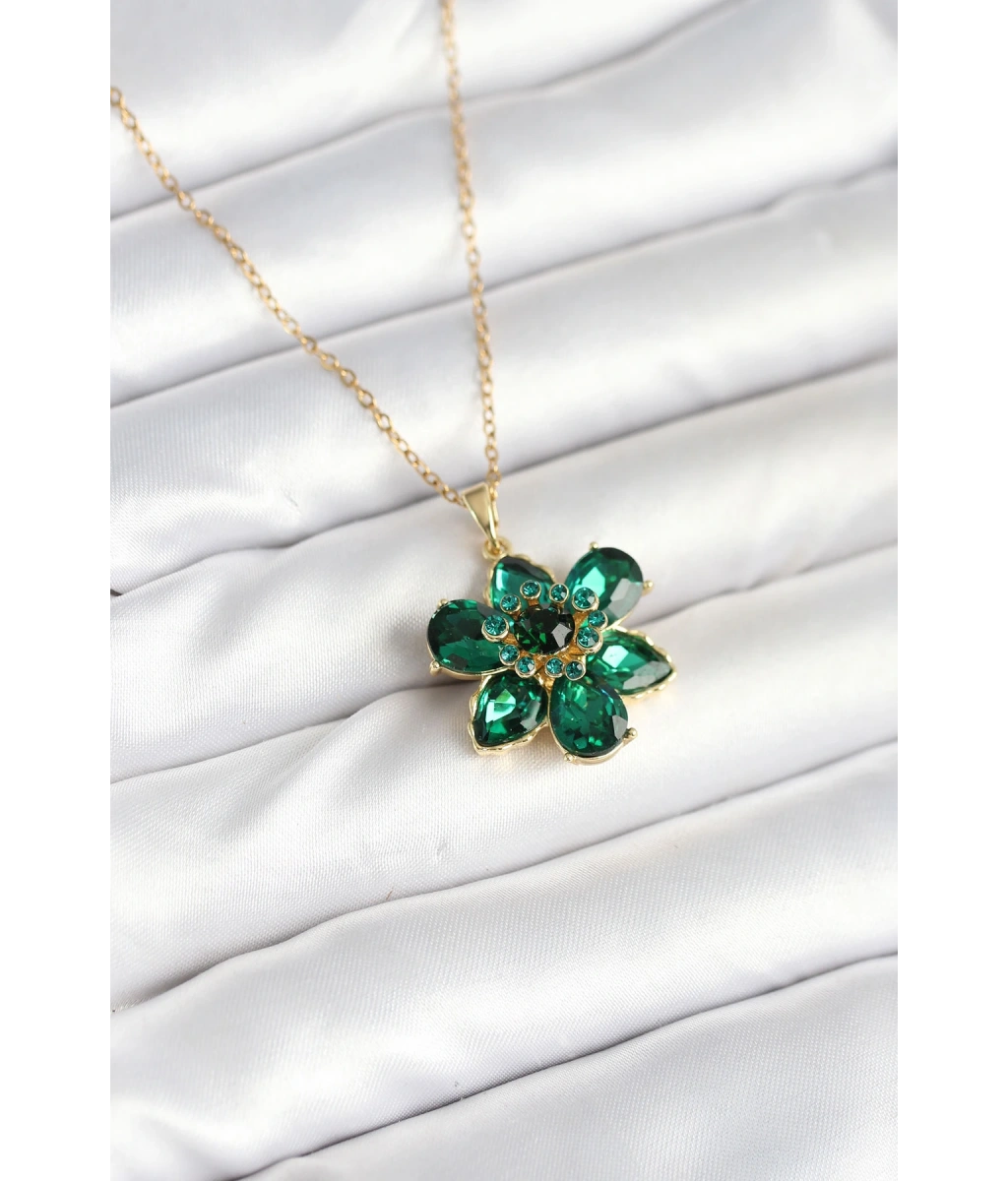 Shoecide 316l Çelik Zincirli Yeşil Çiçek Model Kadın Kolye