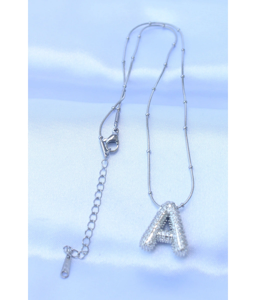 Shoecide 316l Çelik Zincirli Zirkon Taşlı A Harfli Gümüş Renk Bubble Kolye