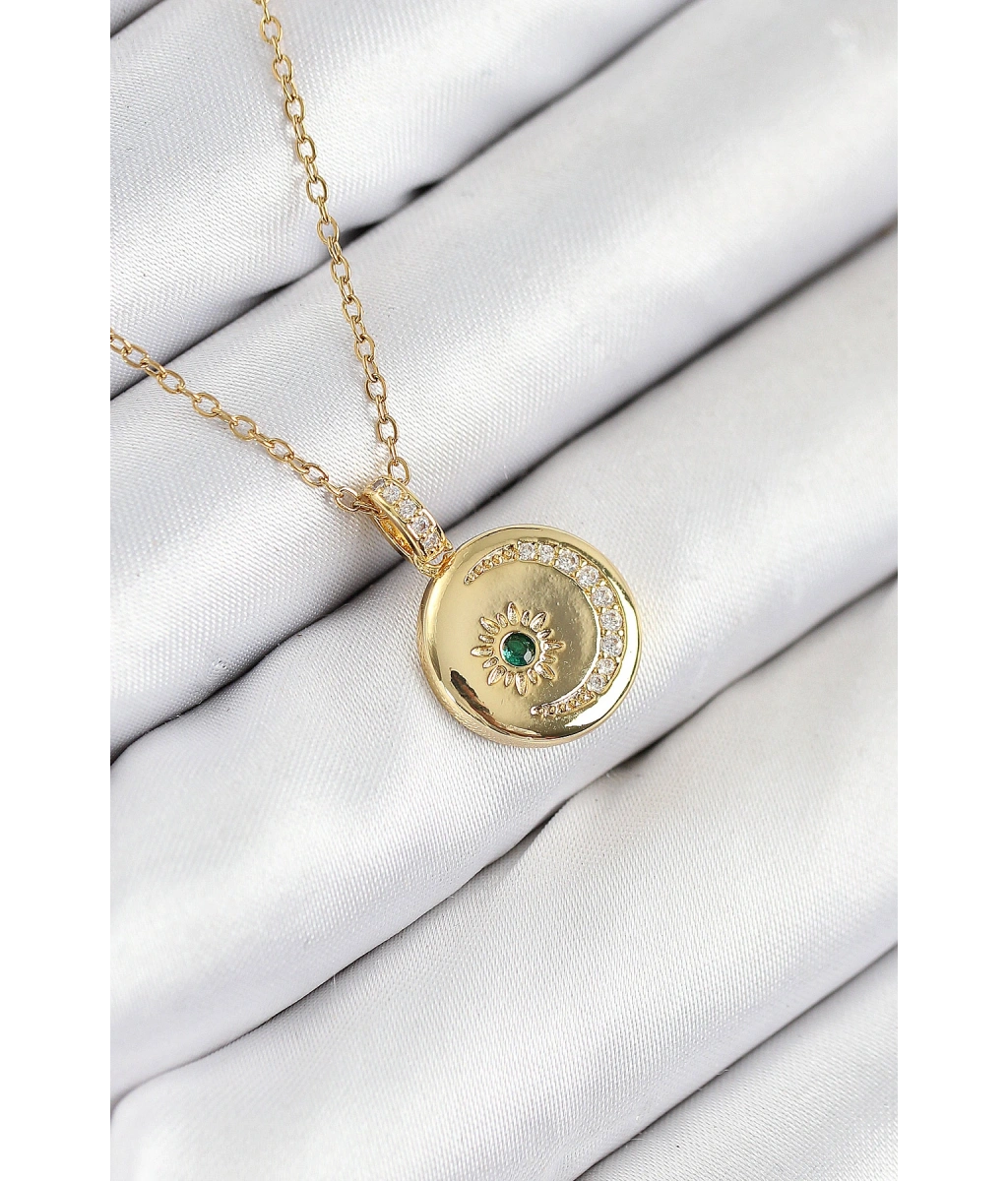 Shoecide 316l Çelik Zirkon Taşlı Ay Ve Güneş Model Gold Renk Kadın Kolye