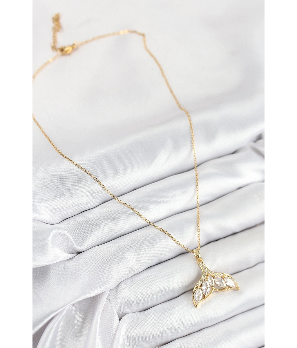 Shoecide 316l Çelik Zirkon Taşlı Balık Kuyruğu Model Gold Renk Kadın Kolye