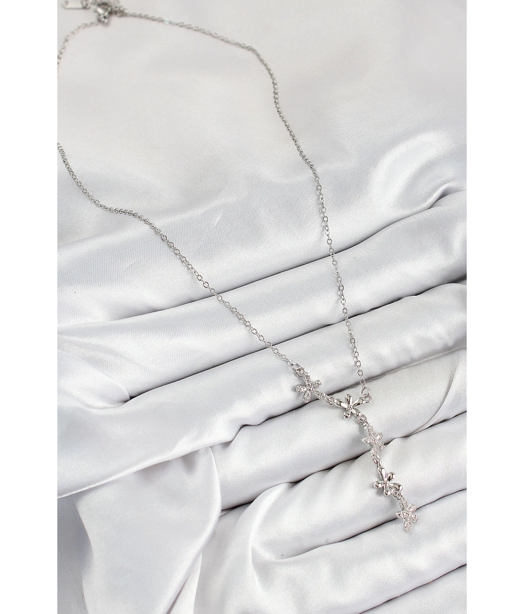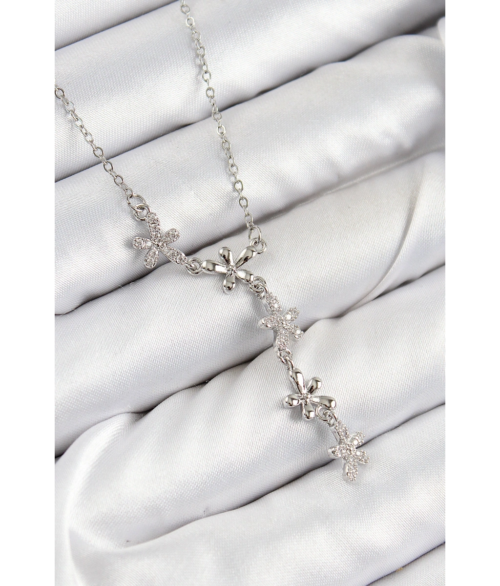 Shoecide 316l Çelik Zirkon Taşlı Çiçek Model Gümüş Renk Kadın Kolye