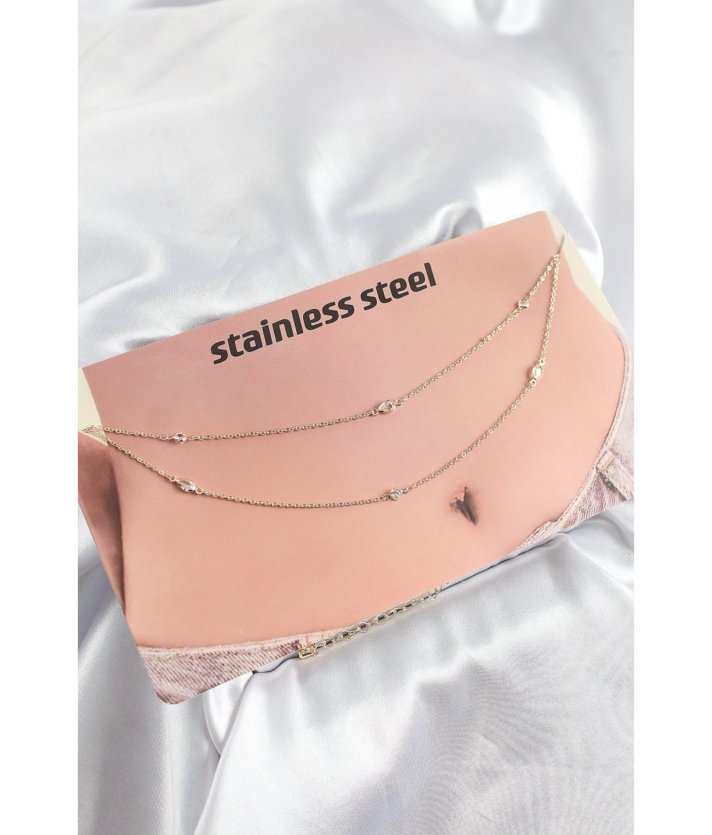 Shoecide 316l Çelik Zirkon Taşlı Damla Model Gold Renk Göbek Bel Zinciri