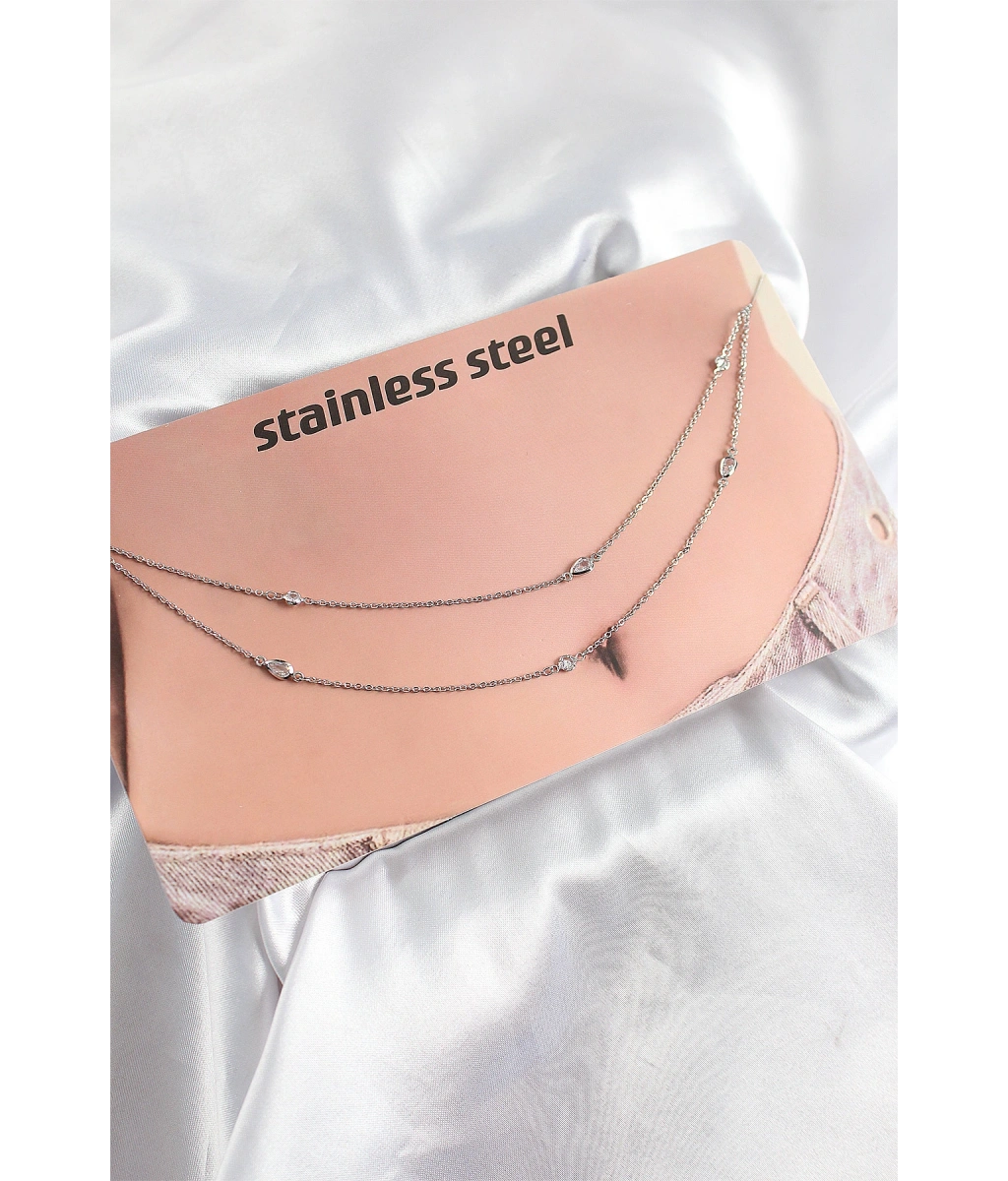 Shoecide 316l Çelik Zirkon Taşlı Damla Model Gümüş Renk Göbek Bel Zinciri