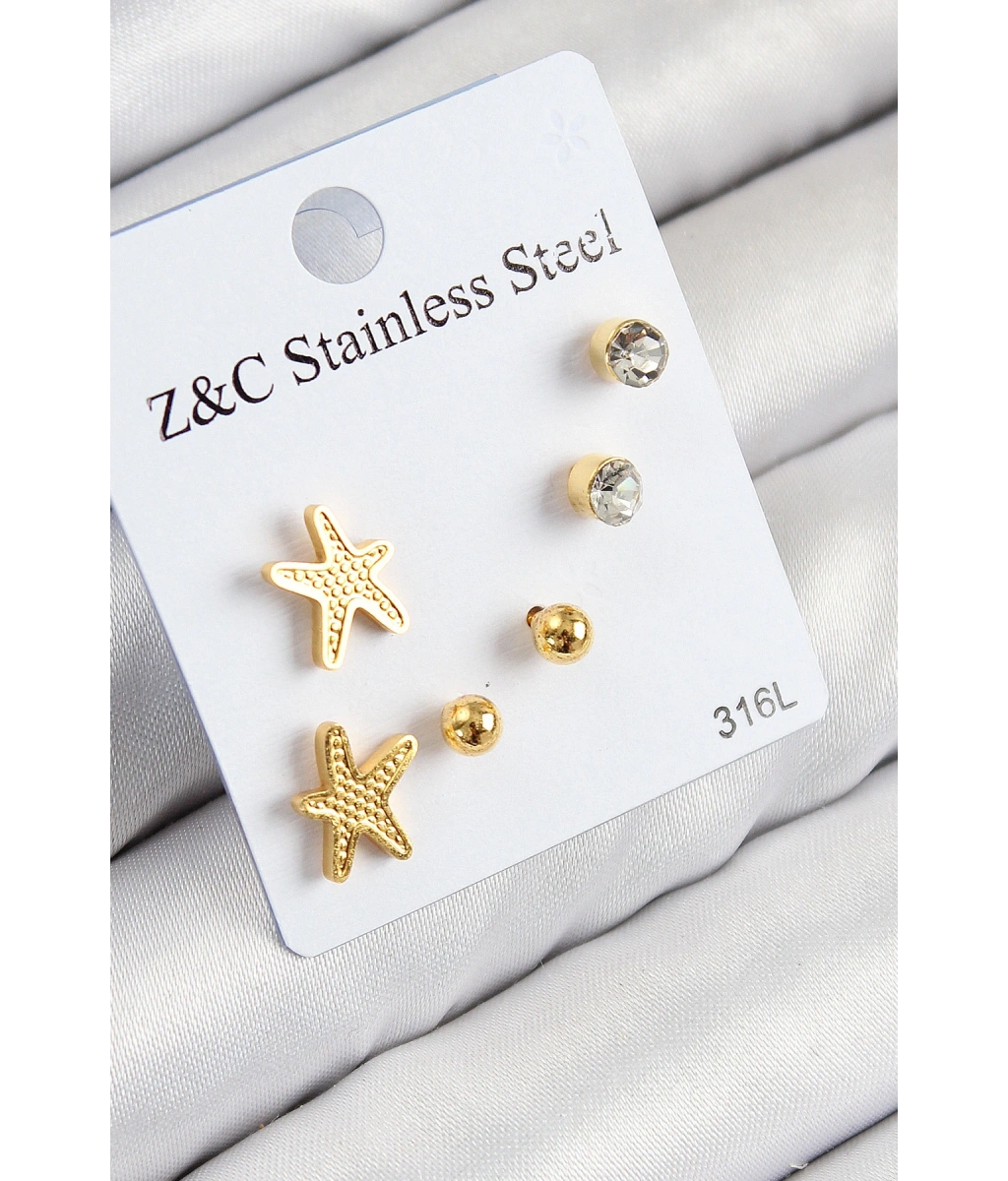 Shoecide 316l Çelik Zirkon Taşlı Deniz Yıldızı Model Gümüş Renk Kadın Set Küpe