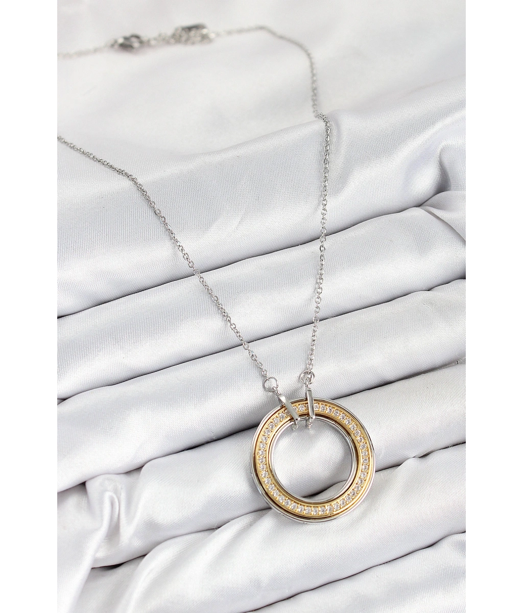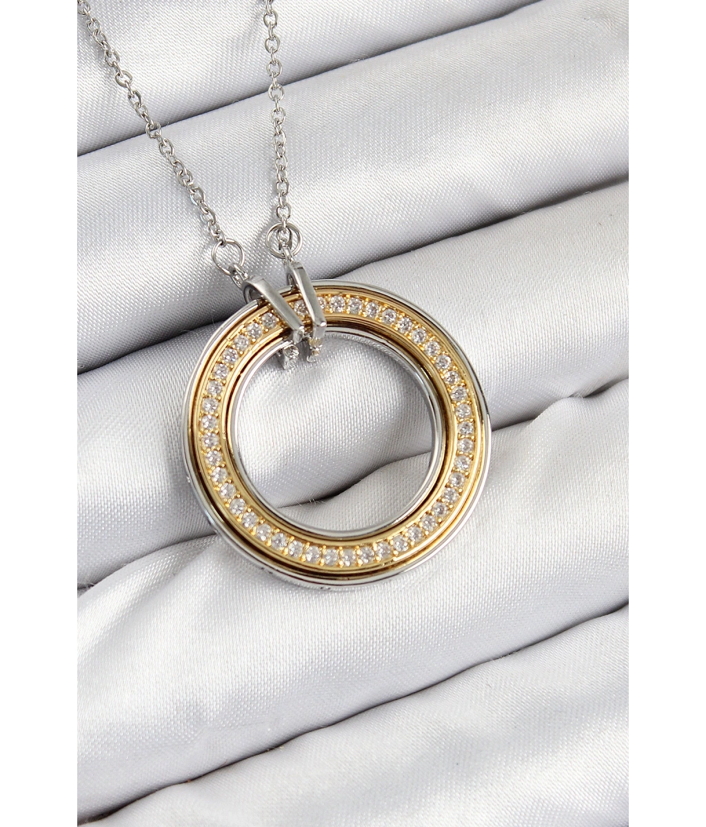 Shoecide 316l Çelik Zirkon Taşlı Dönen Daire Model Gold Ve Gümüş Renk Kadın Kolye