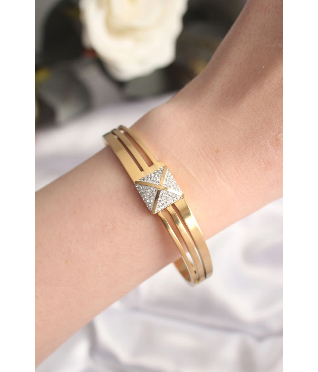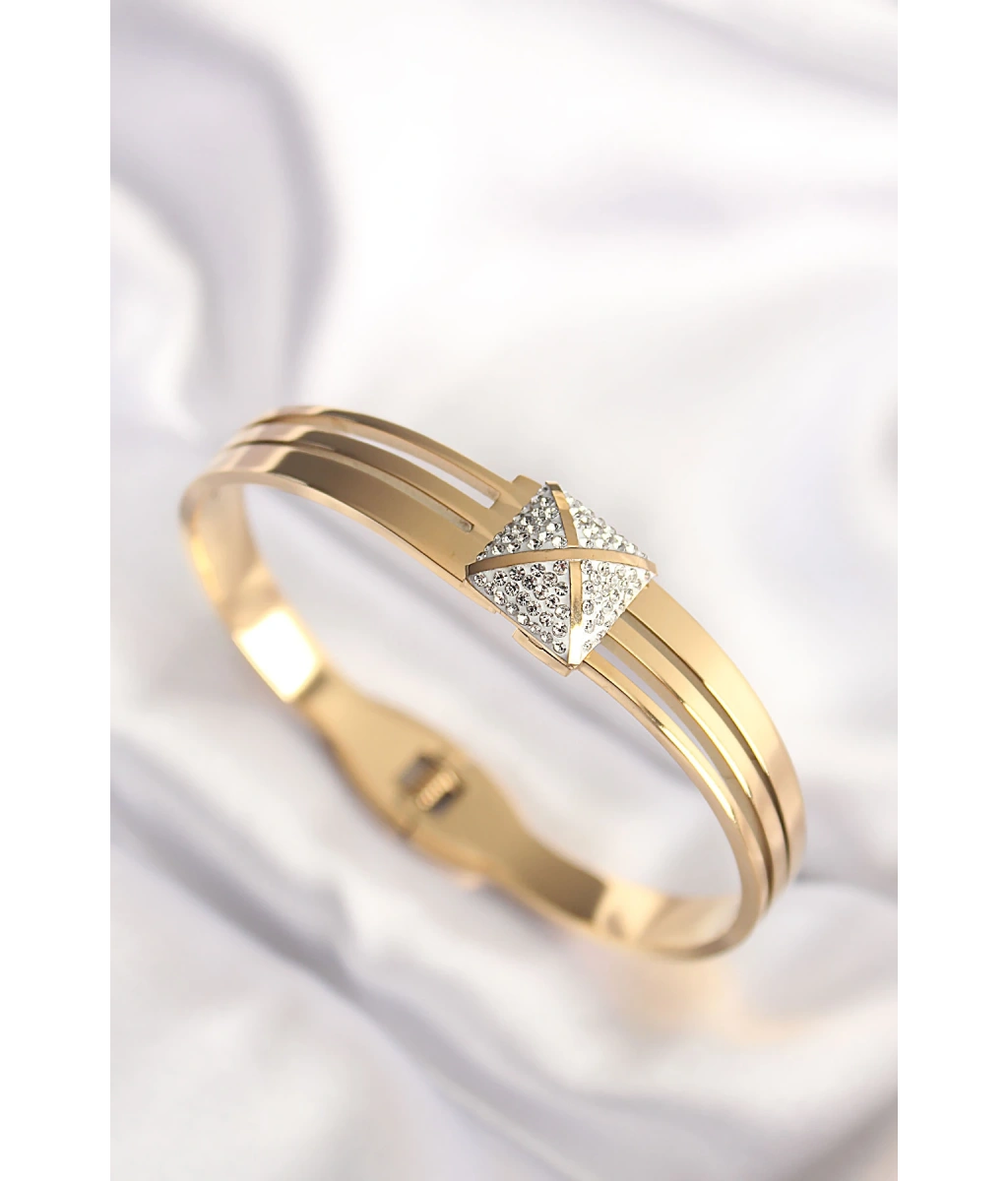 Shoecide 316l Çelik Zirkon Taşlı Gold Renk Kadın Kelepçe Bilezik