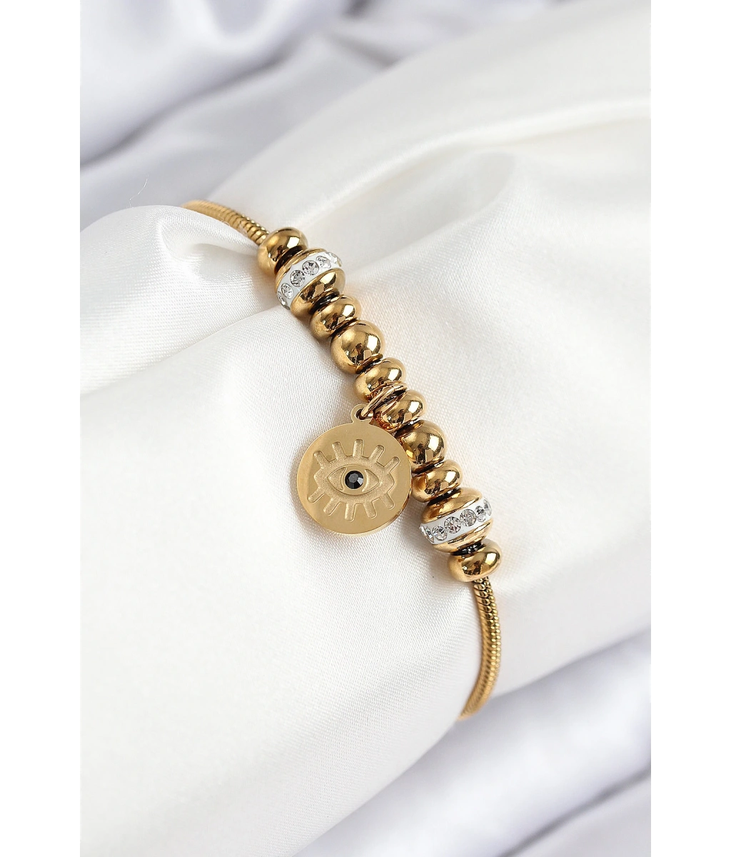 Shoecide 316l Çelik Zirkon Taşlı Göz Charm Model Gold Renk Kadın Bileklik