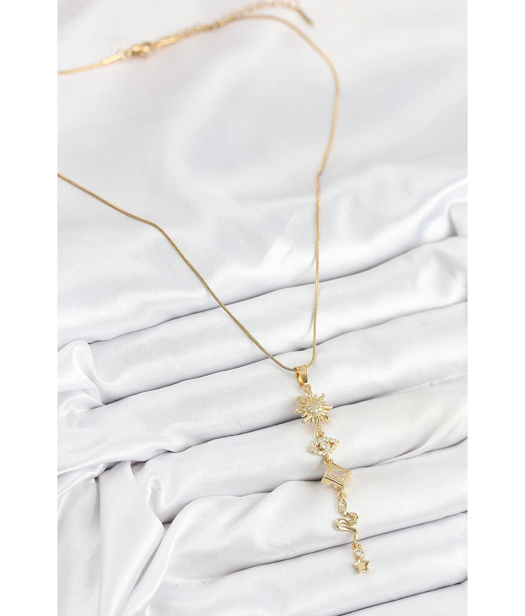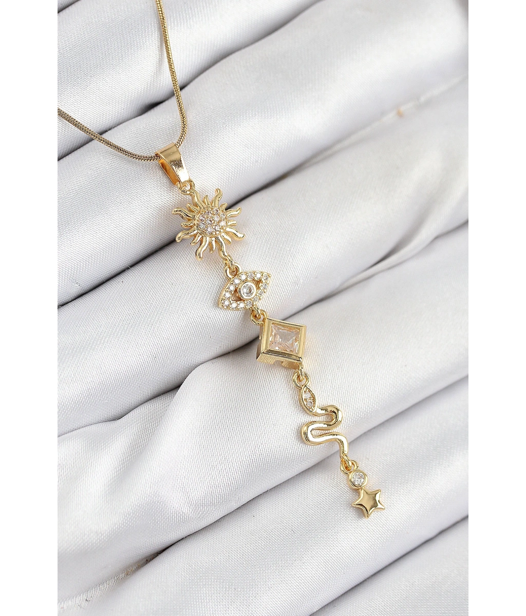 Shoecide 316l Çelik Zirkon Taşlı Güneş Ve Ay Enerji Model Gold Renk Kadın Kolye