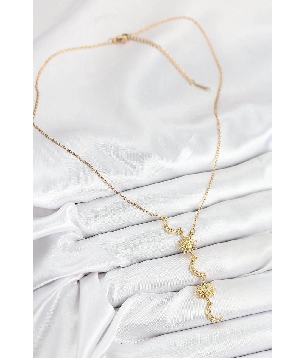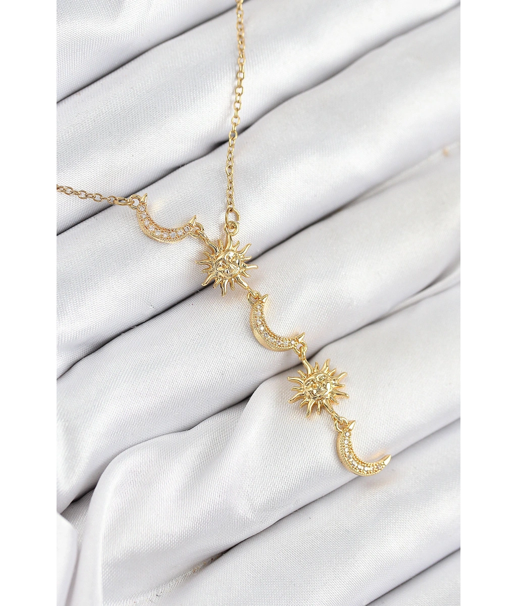 Shoecide 316l Çelik Zirkon Taşlı Güneş Ve Ay Model Gold Renk Kadın Kolye