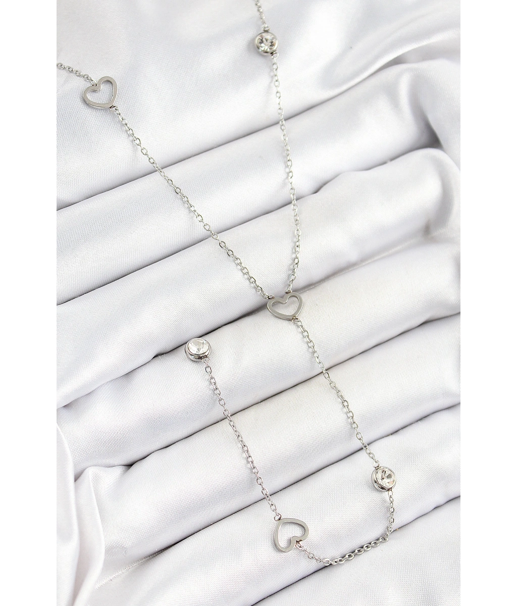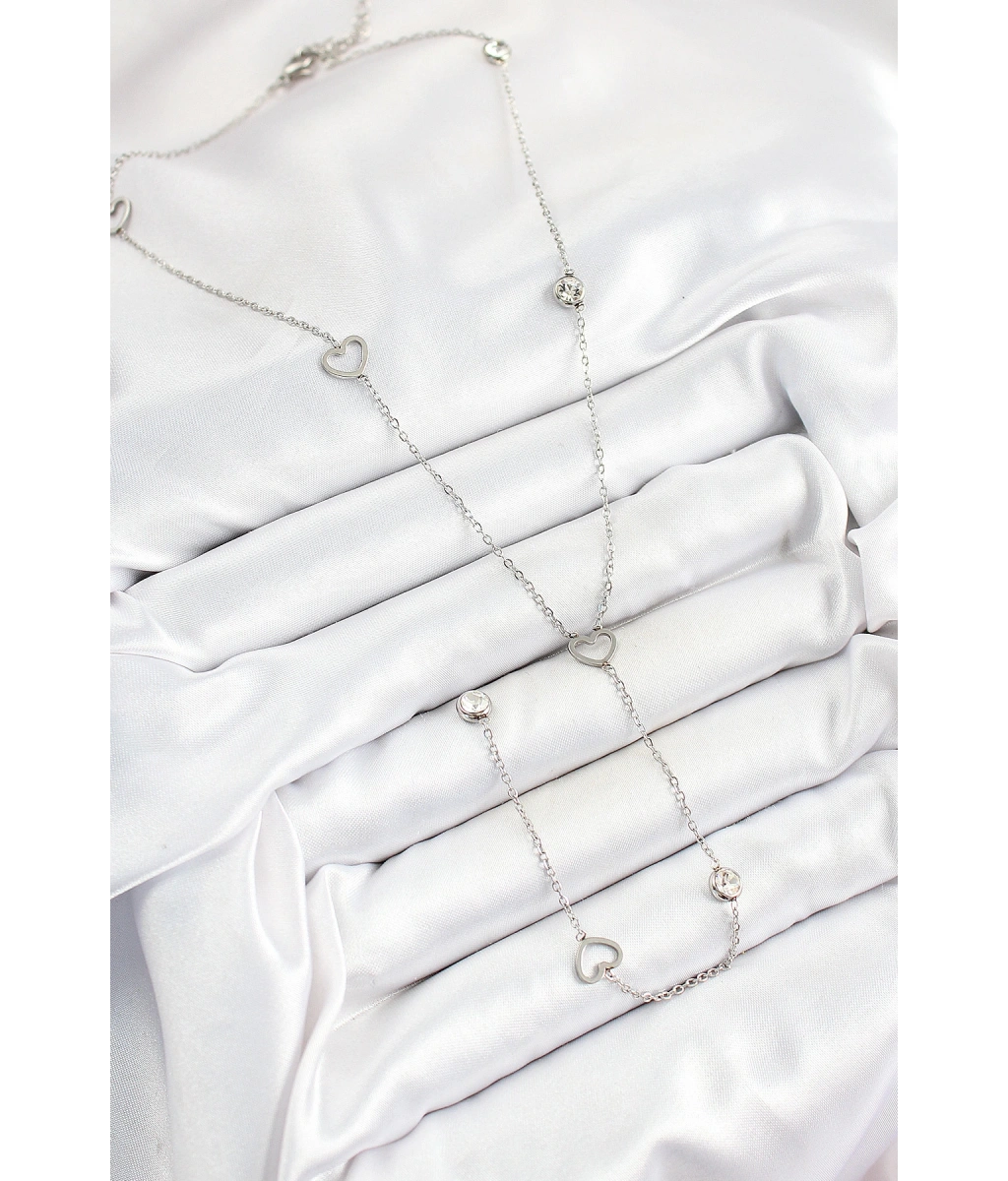 Shoecide 316l Çelik Zirkon Taşlı Kalp Figürlü Y Model Gümüş Renk Kadın Kolye