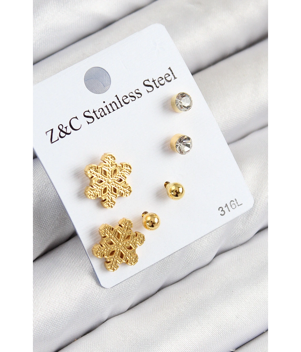 Shoecide 316l Çelik Zirkon Taşlı Kar Tanesi Model Gold Renk Kadın Set Küpe