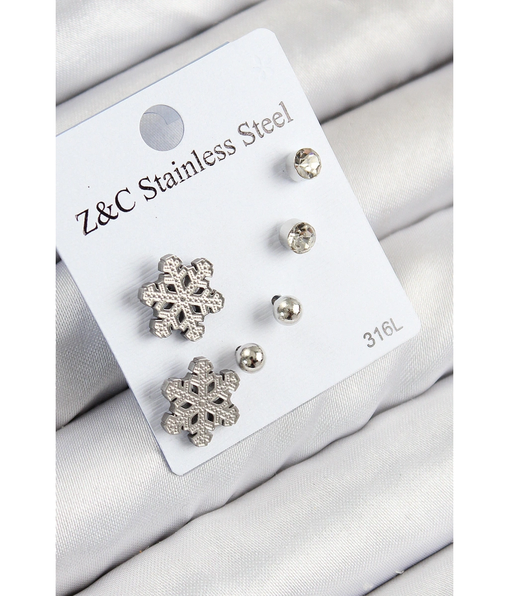 Shoecide 316l Çelik Zirkon Taşlı Kar Tanesi Model Gümüş Renk Kadın Set Küpe