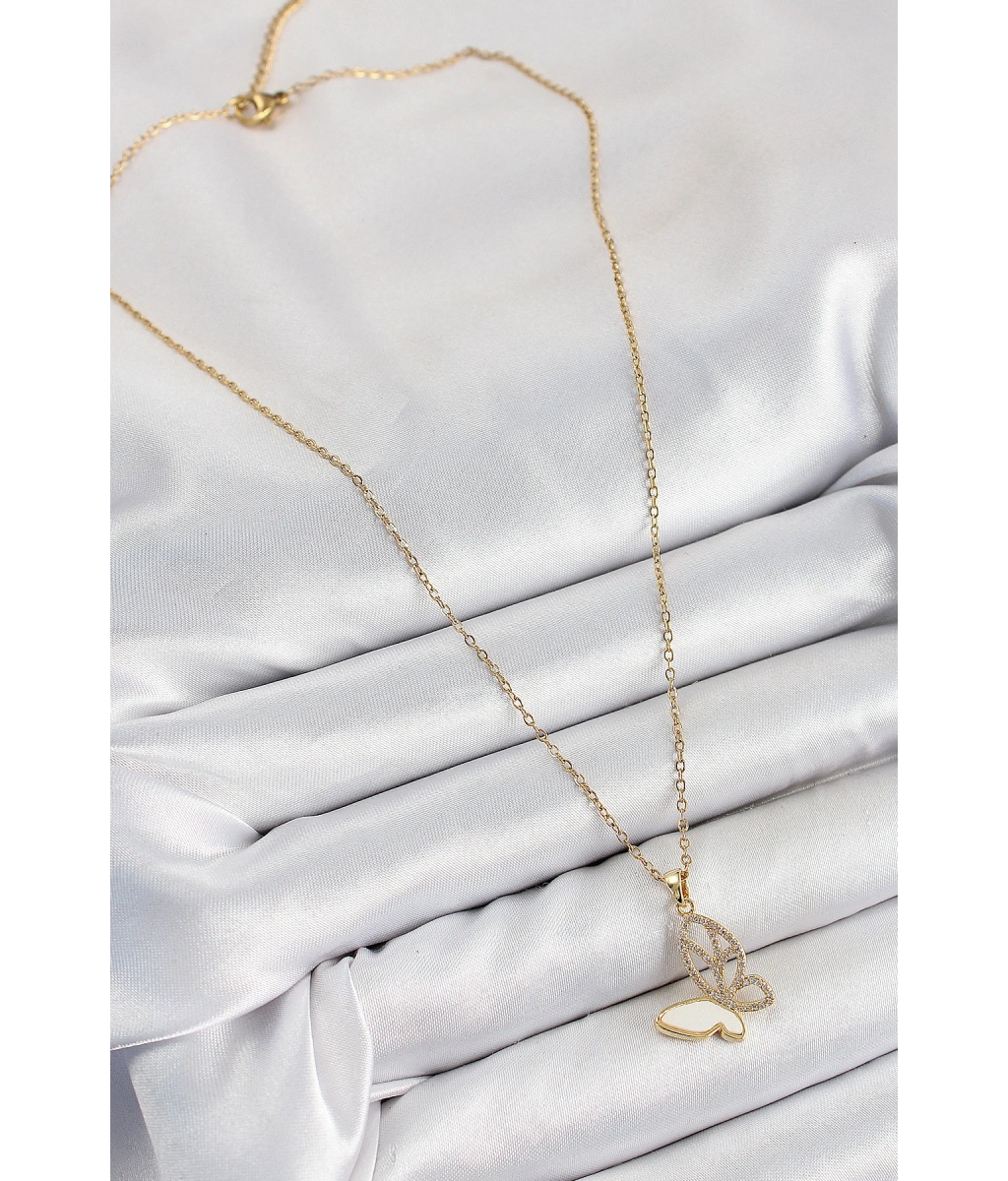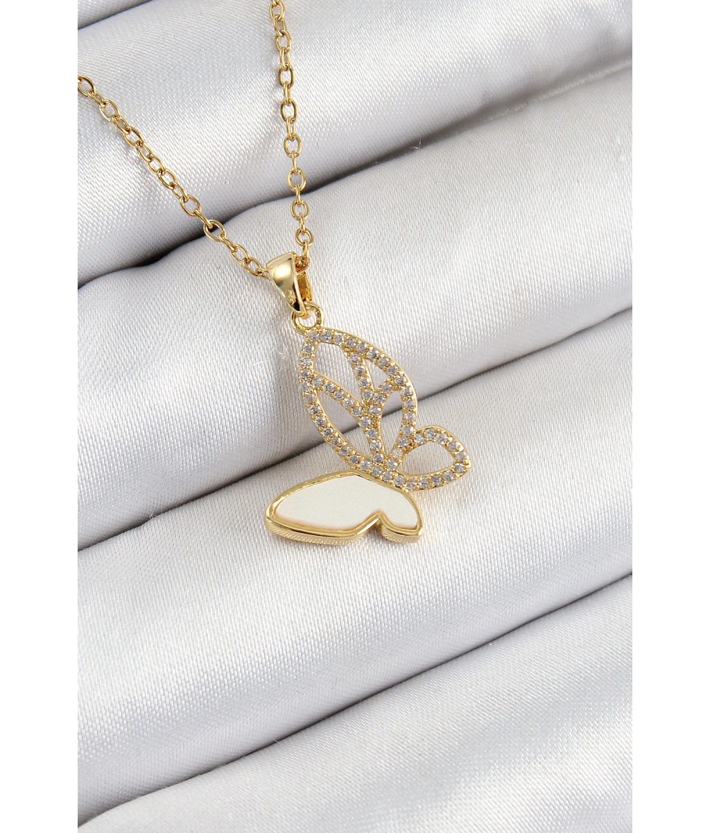 Shoecide 316l Çelik Zirkon Taşlı Kelebek Model Gold Renk Kadın Kolye
