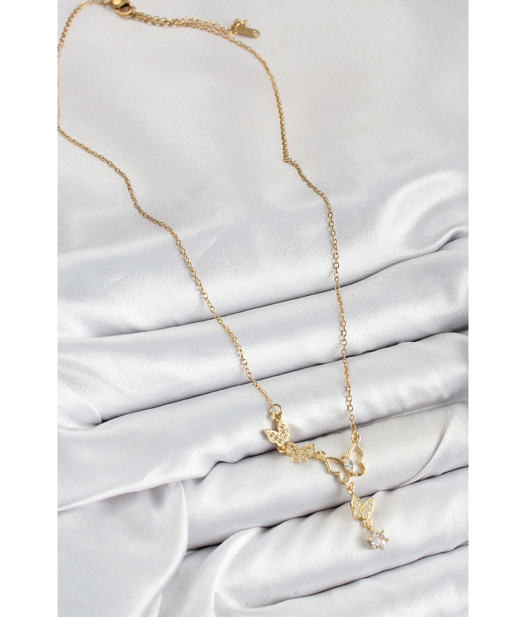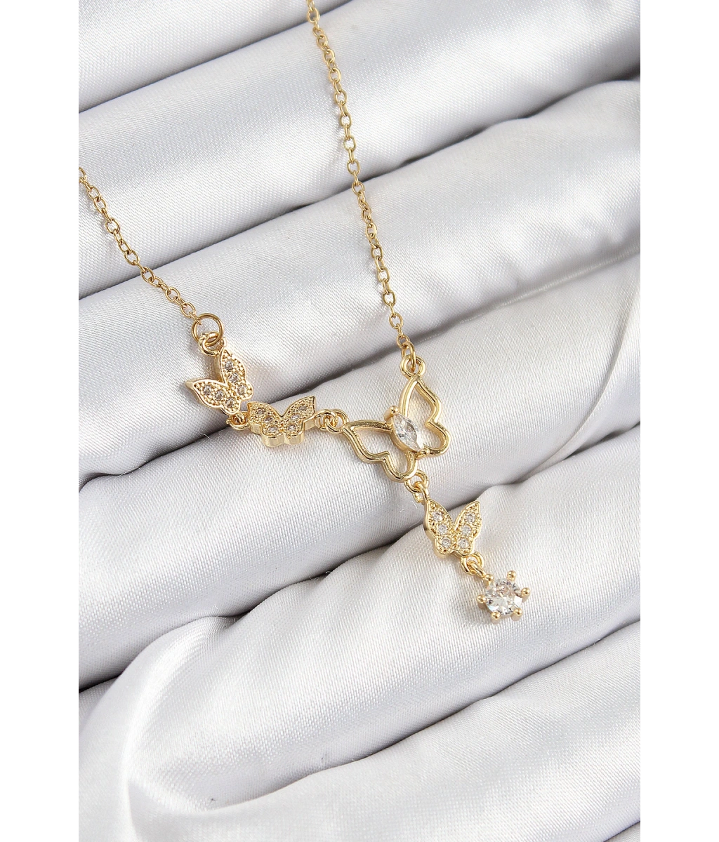 Shoecide 316l Çelik Zirkon Taşlı Kelebek Model Gold Renk Kadın Kolye