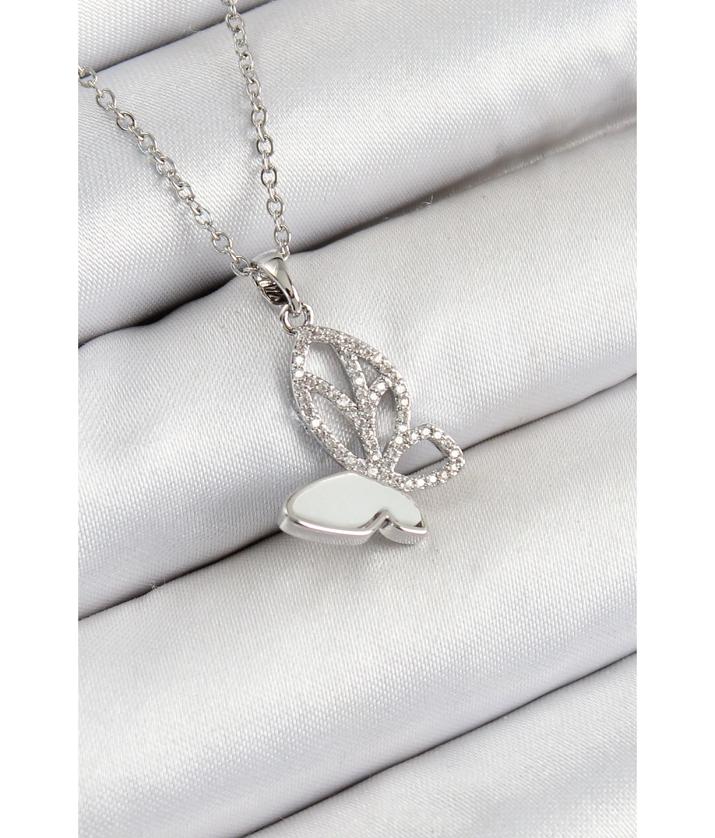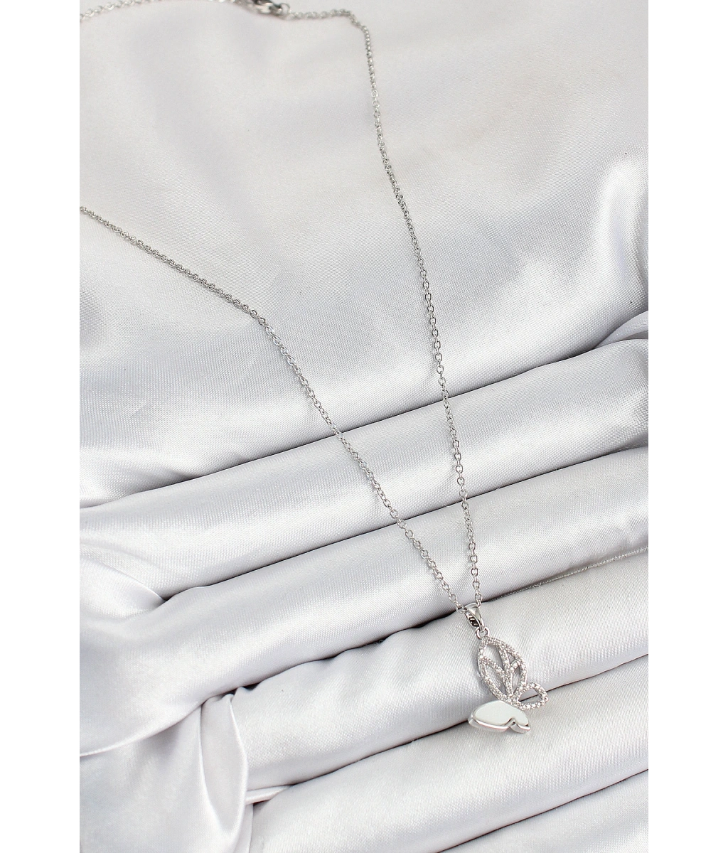 Shoecide 316l Çelik Zirkon Taşlı Kelebek Model Gümüş Renk Kadın Kolye