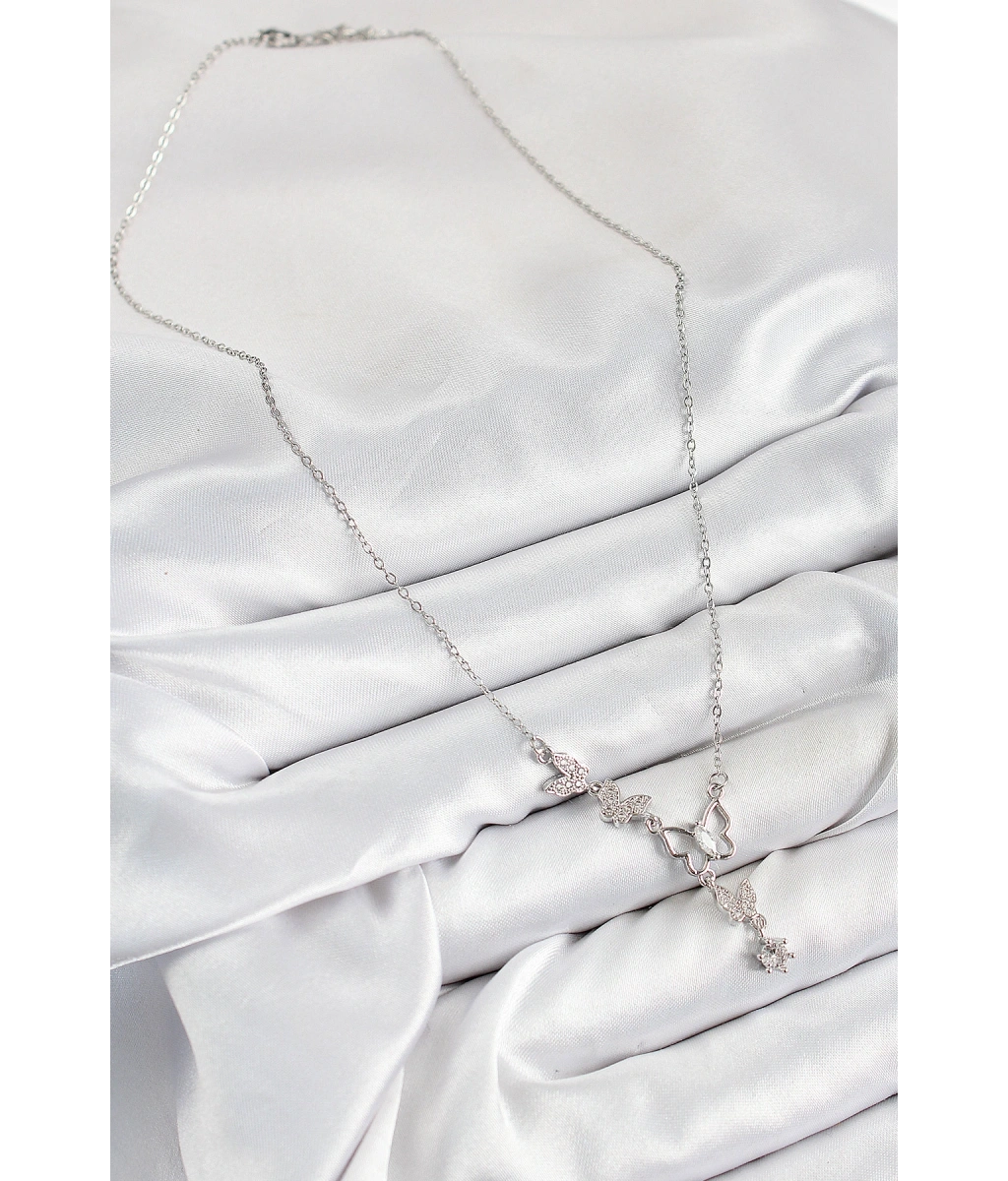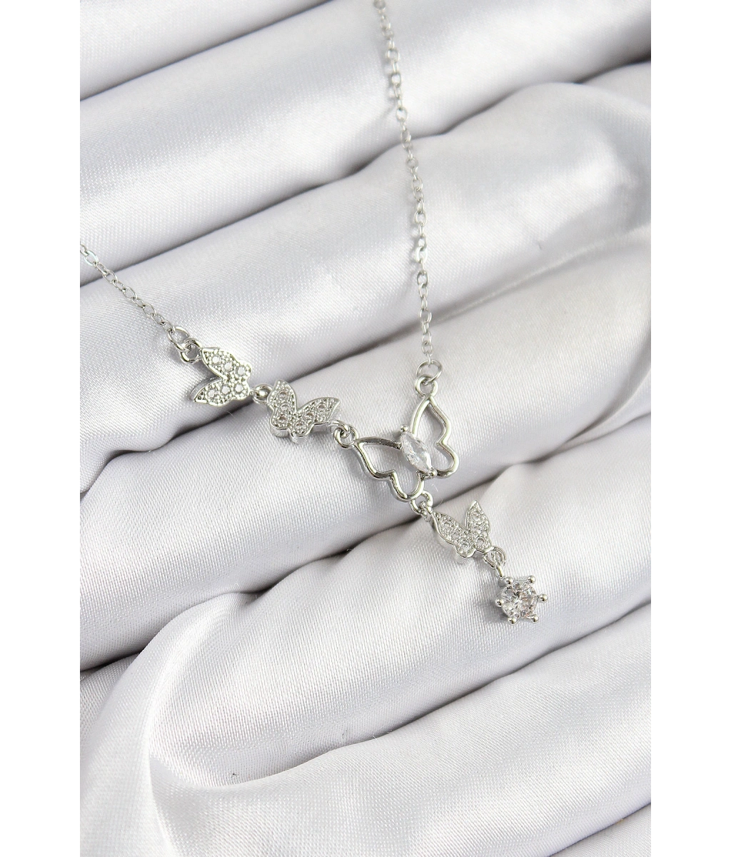 Shoecide 316l Çelik Zirkon Taşlı Kelebek Model Gümüş Renk Kadın Kolye