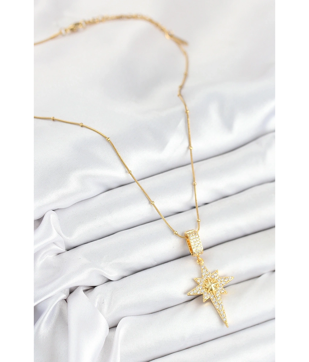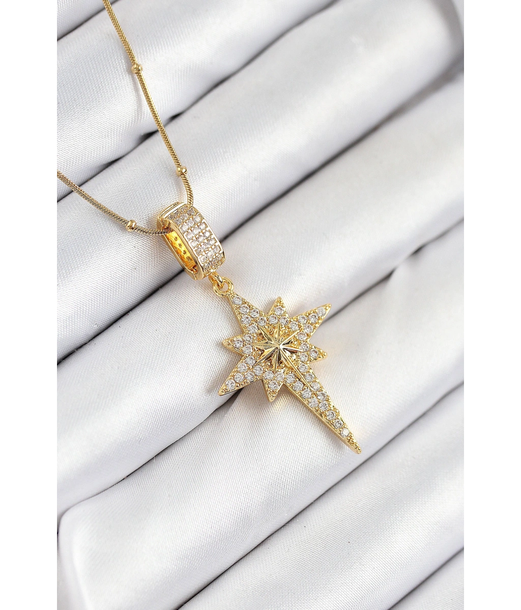 Shoecide 316l Çelik Zirkon Taşlı Kutup Yıldızı Model Gold Renk Kadın Kolye