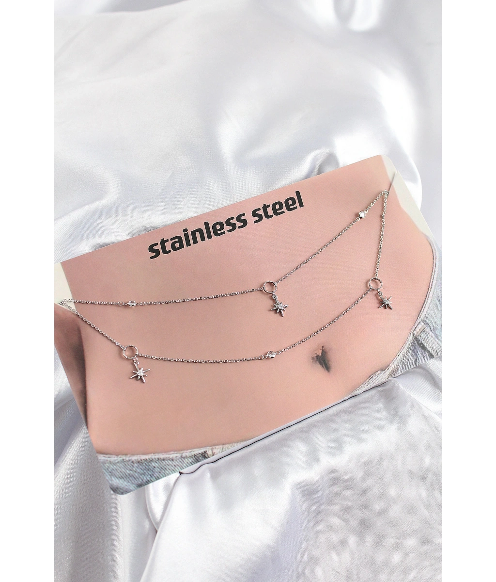 Shoecide 316l Çelik Zirkon Taşlı Kutup Yıldızı Model Gümüş Renk Göbek Bel Zinciri