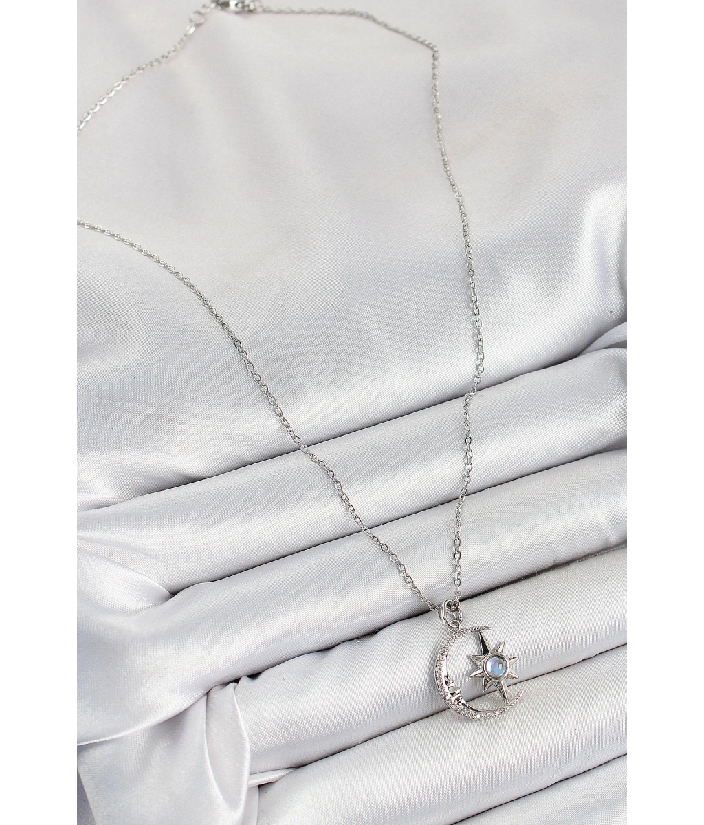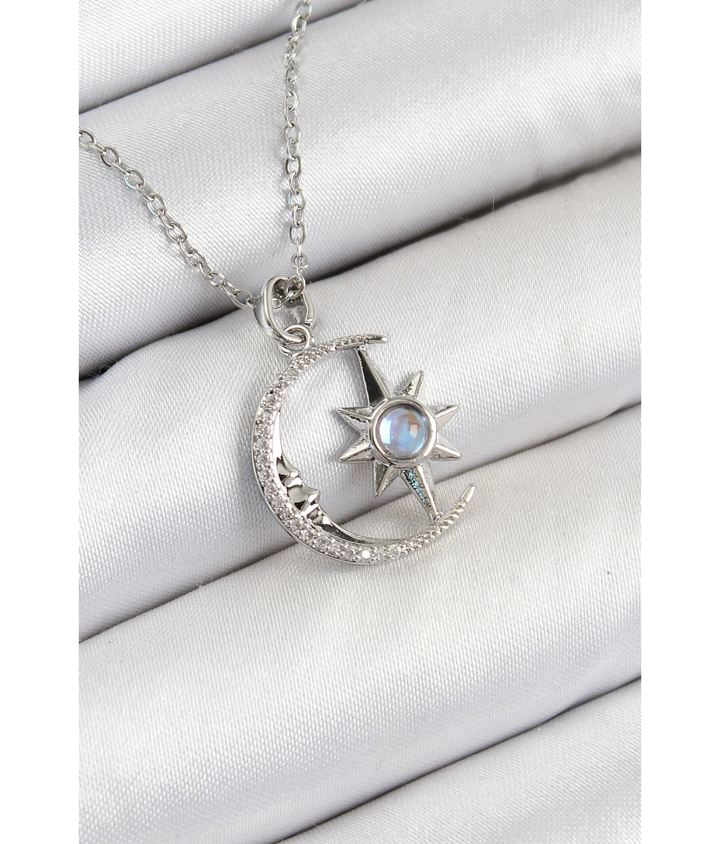 Shoecide 316l Çelik Zirkon Taşlı Kutup Yıldızlı Hilal Model Gümüş Renk Kadın Kolye