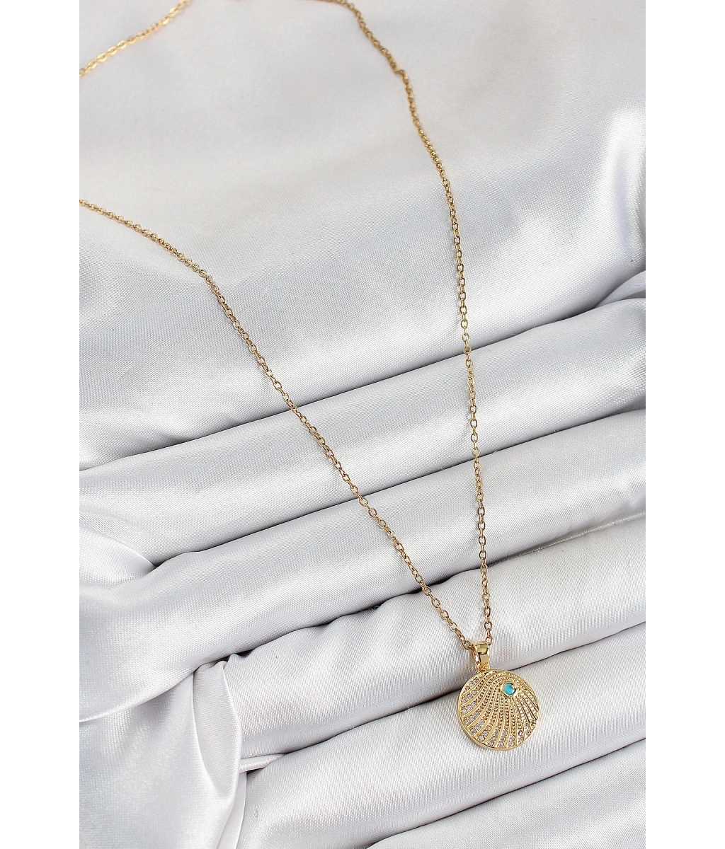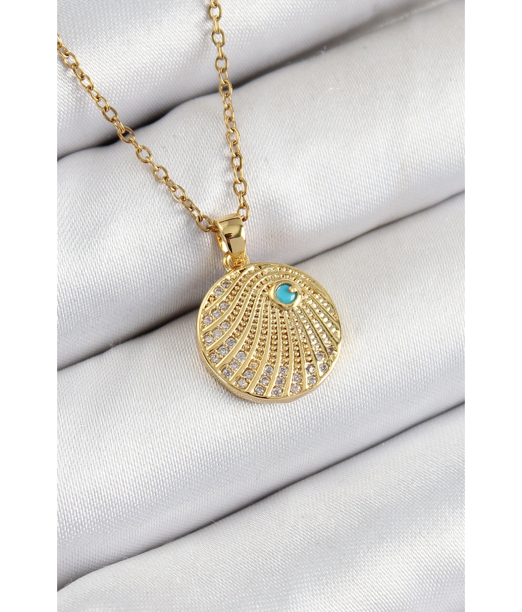 Shoecide 316l Çelik Zirkon Taşlı Madalyon Model Gold Renk Kadın Kolye
