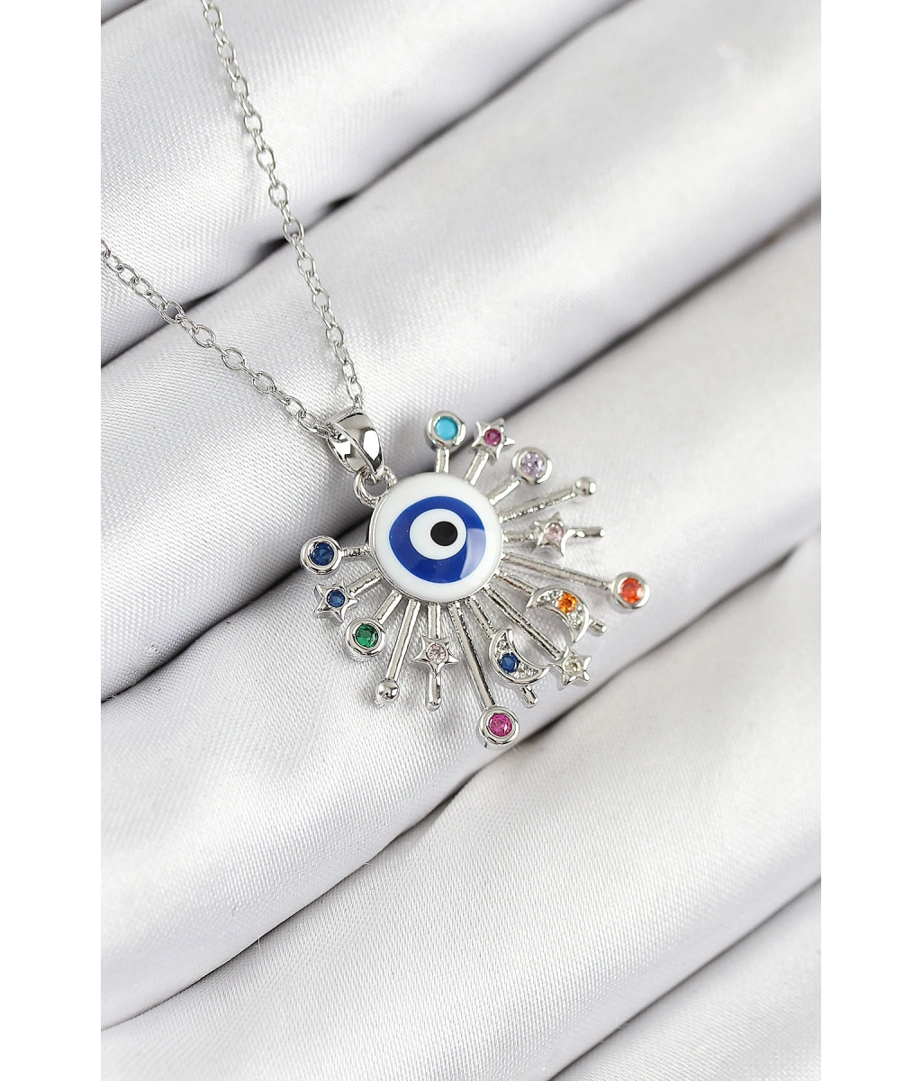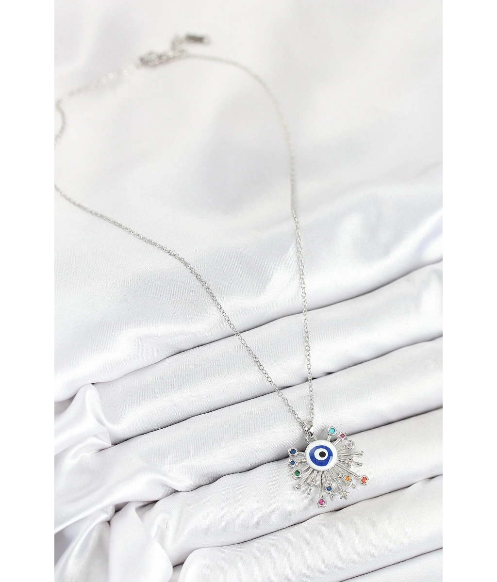 Shoecide 316l Çelik Zirkon Taşlı Nazar Model Gümüş Renk Kadın Kolye