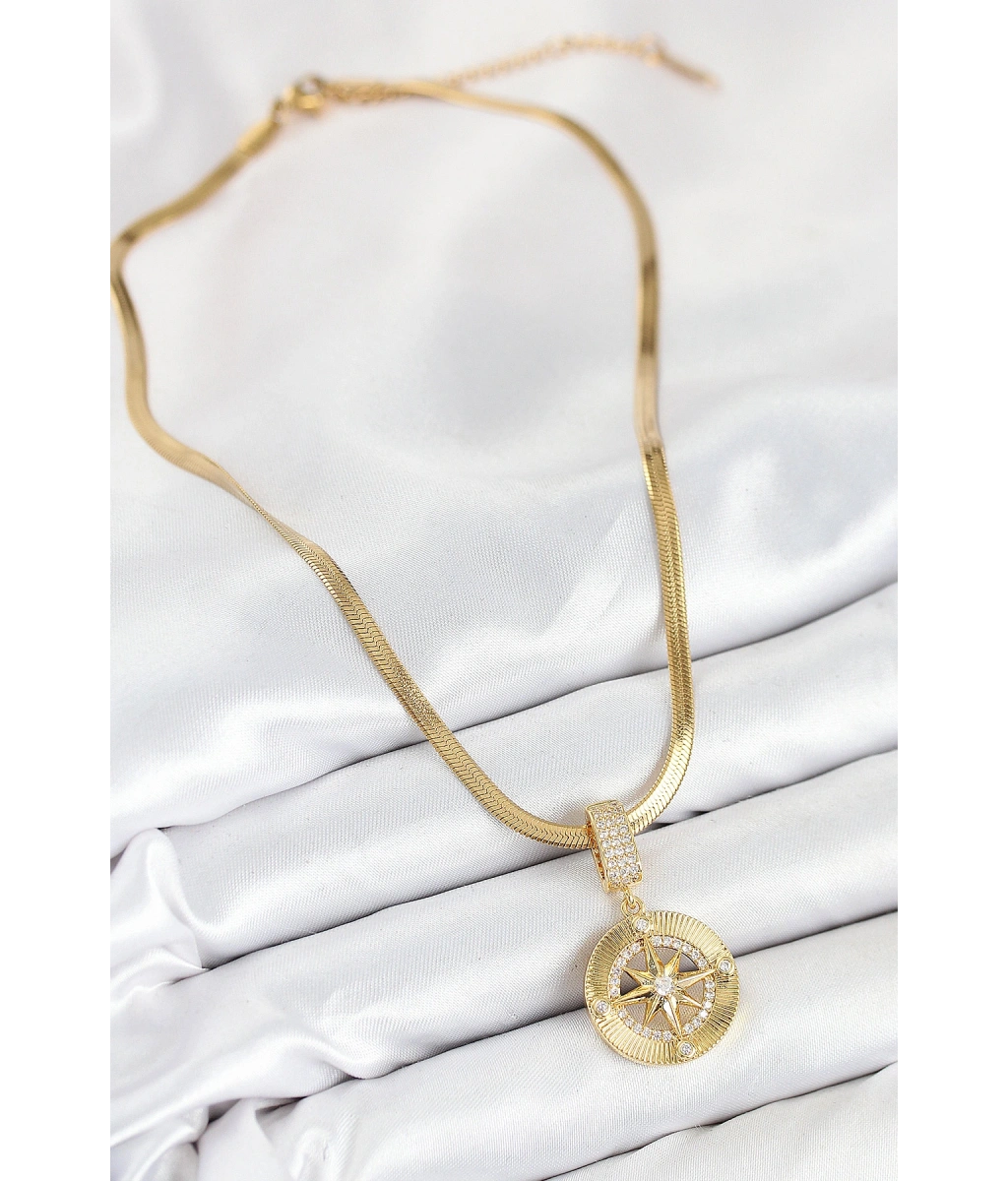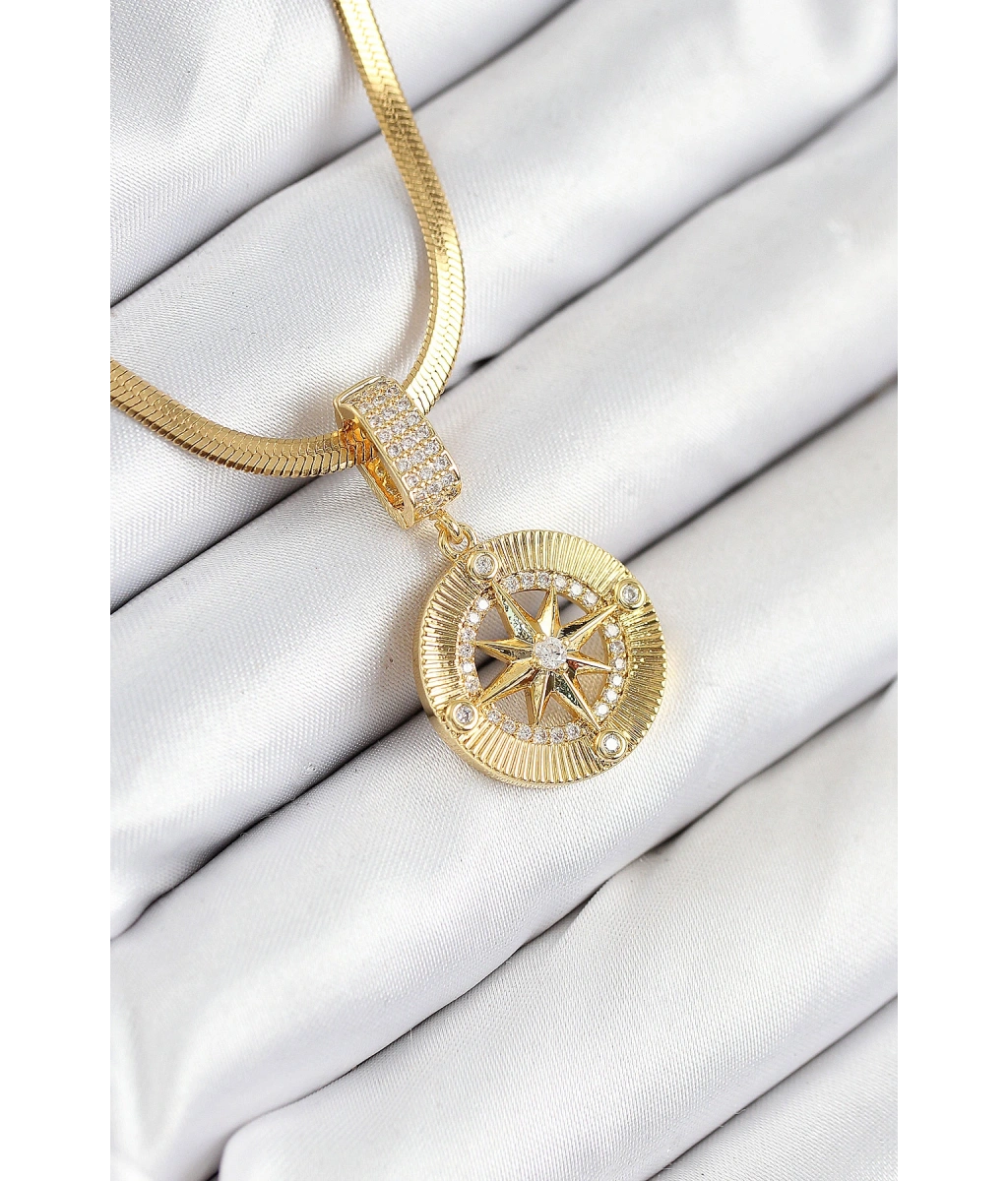 Shoecide 316l Çelik Zirkon Taşlı Pusula Model Gold Renk Kadın Kolye