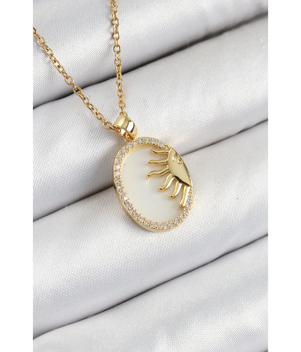 Shoecide 316l Çelik Zirkon Taşlı Yarım Güneş Model Gold Renk Kadın Kolye