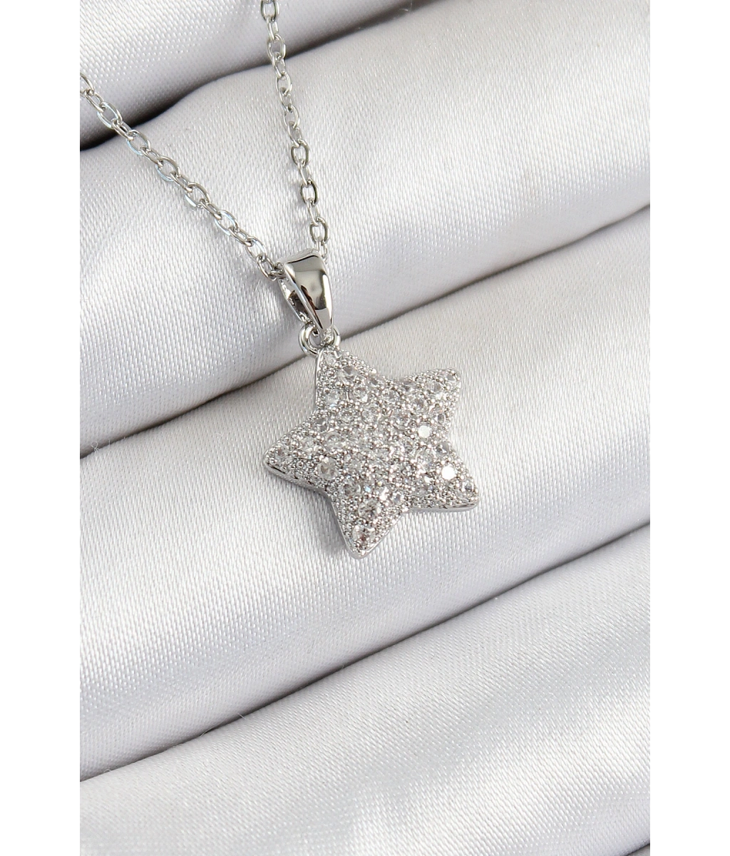 Shoecide 316l Çelik Zirkon Taşlı Yıldız Model Gümüş Renk Kadın Kolye