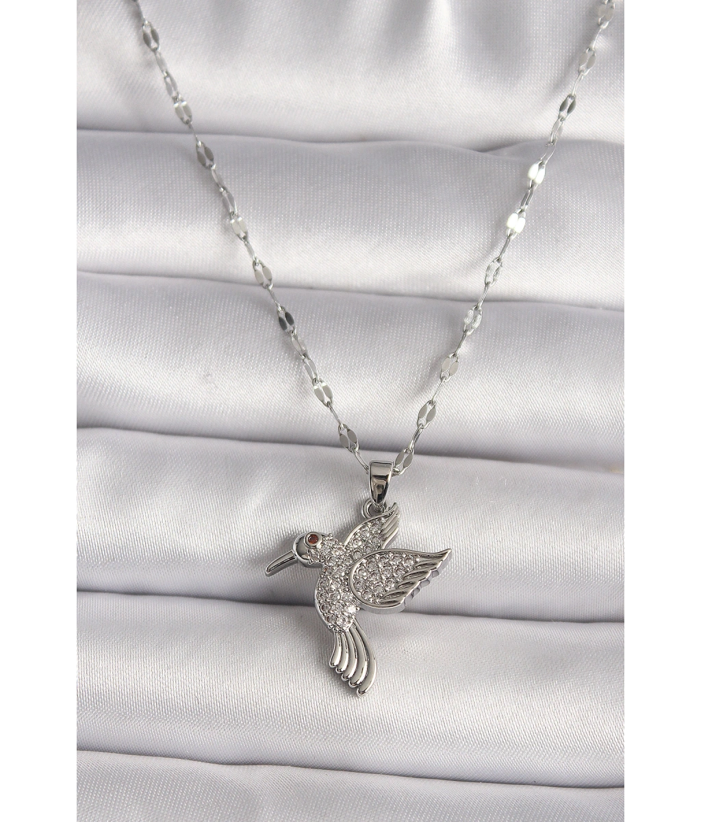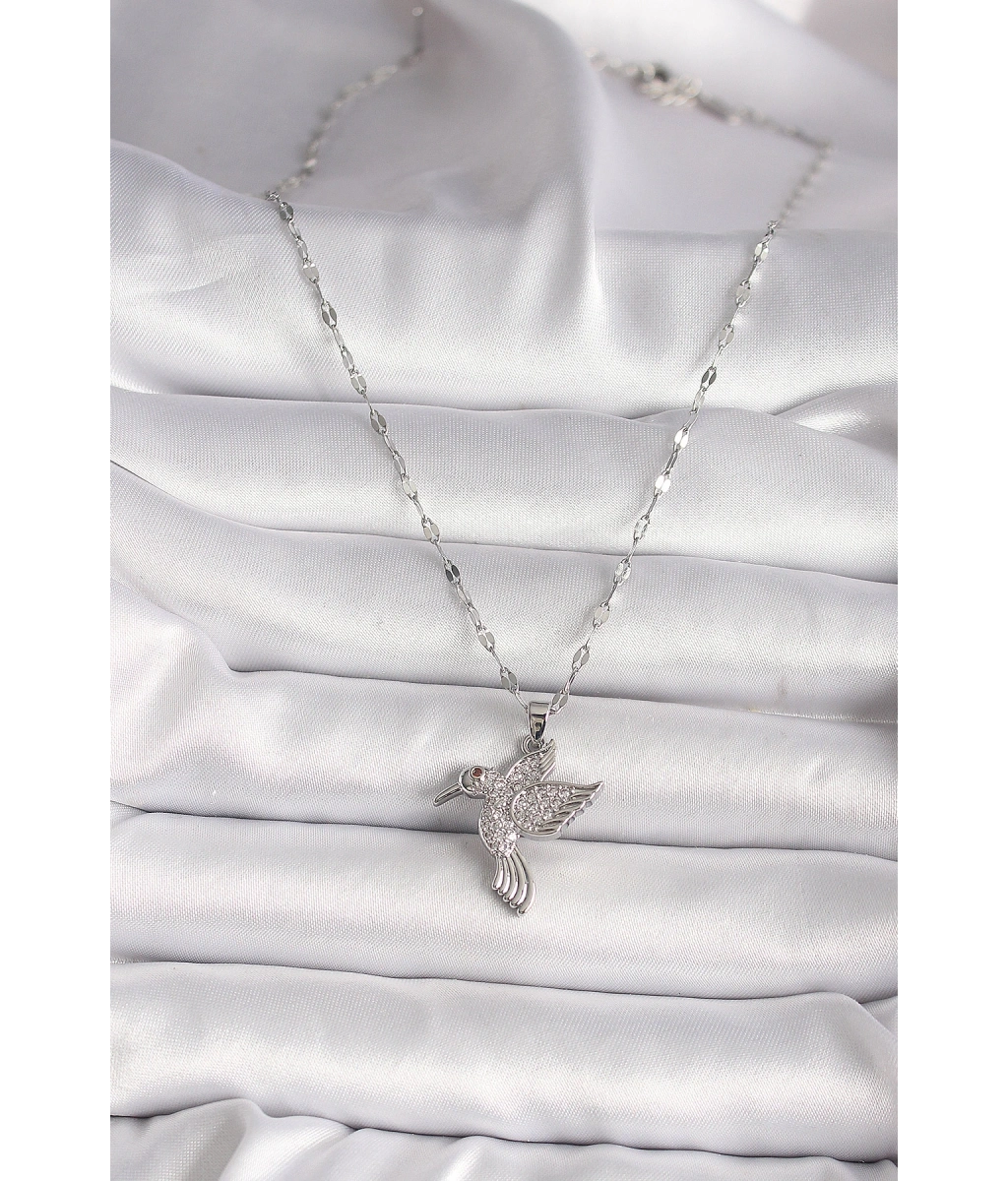 Shoecide 316l Gümüş Renk Zirkon Taşlı Sinek Kuşu Model Kadın Kolye