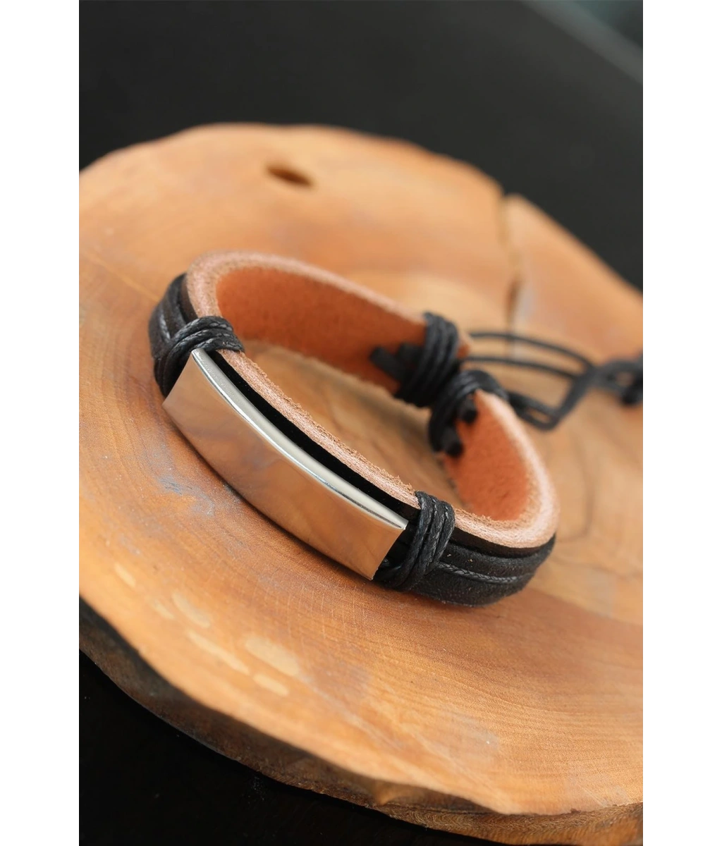 Güncel şıklığı Çelik Aksesuarlı Siyah Renk Deri Erkek Bileklik ile yakalayın.
