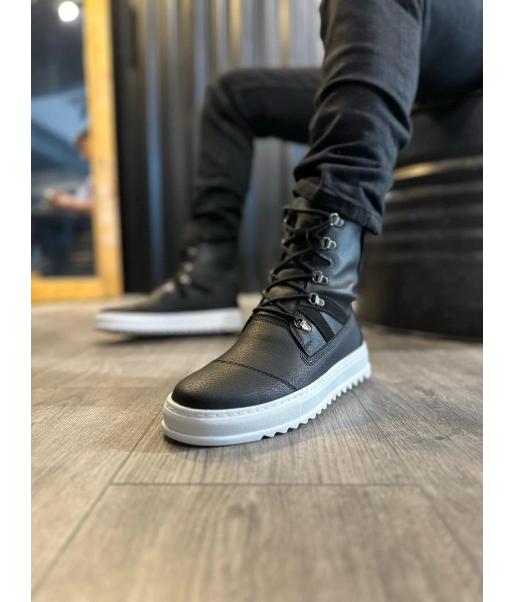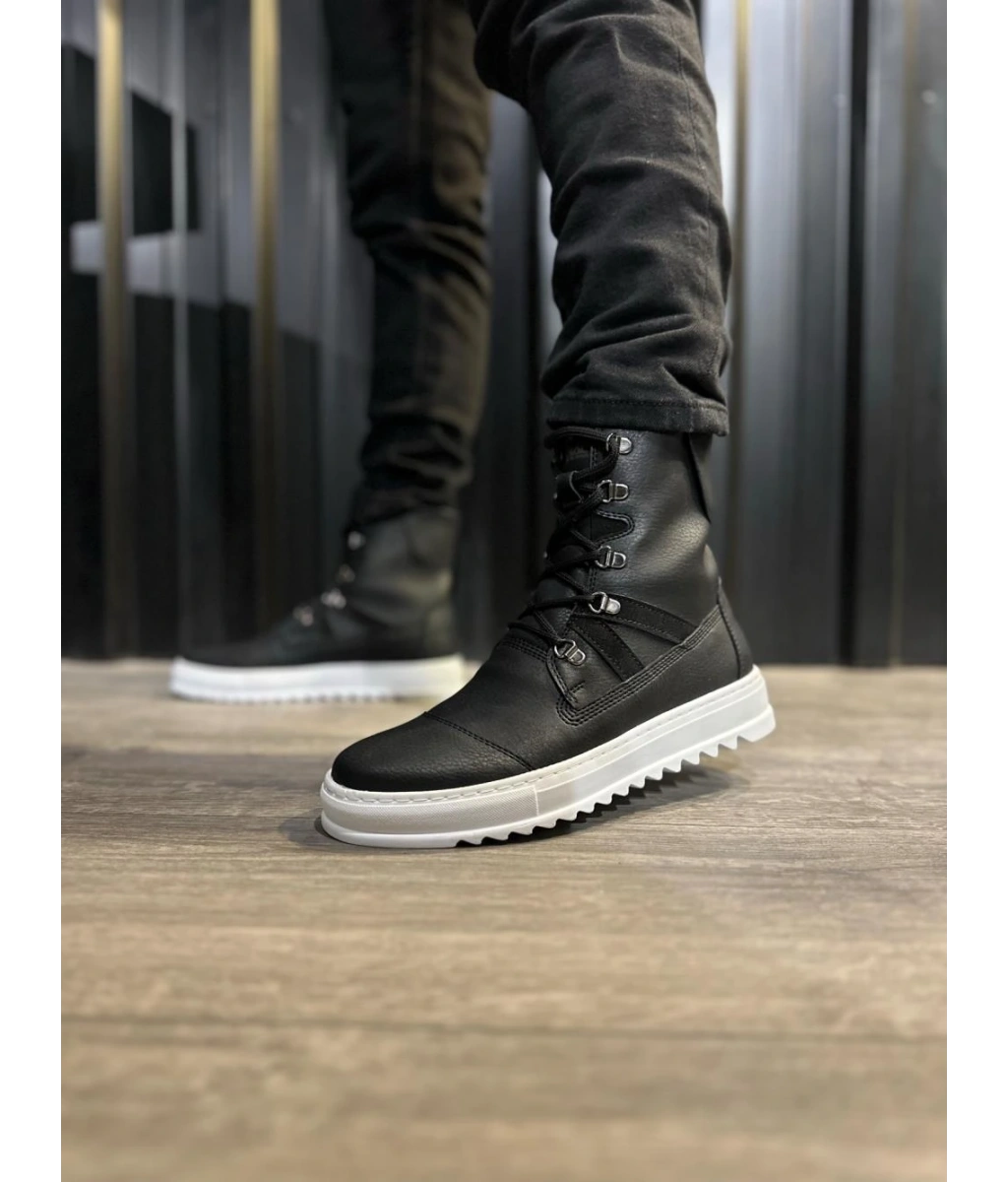 Shoecide Sb0713 Bağcıklı Yüksek Siyah Beyaz Taban Erkek Tarz Spor Bot