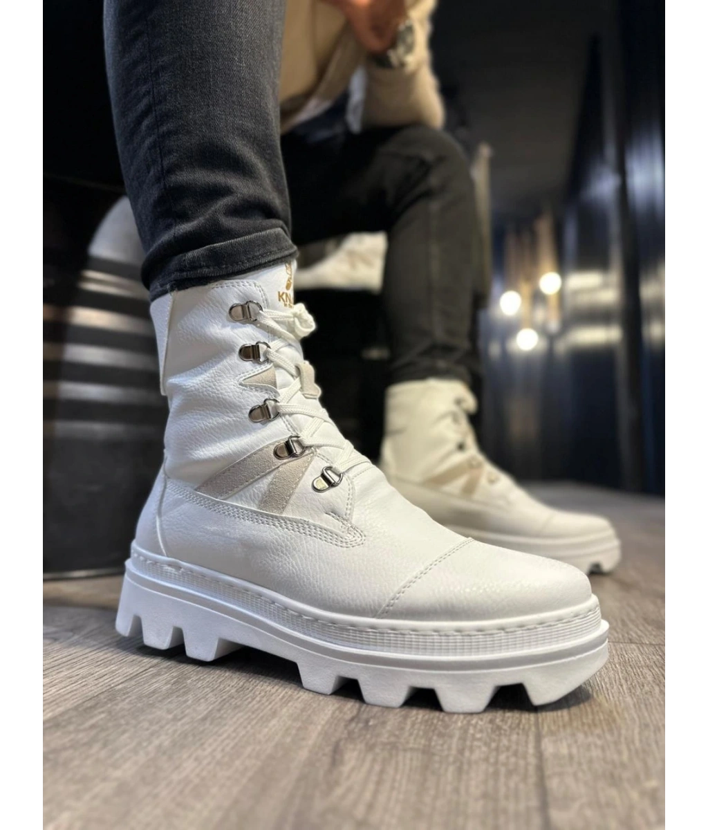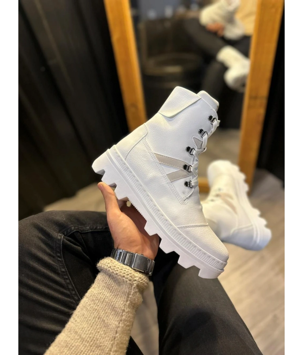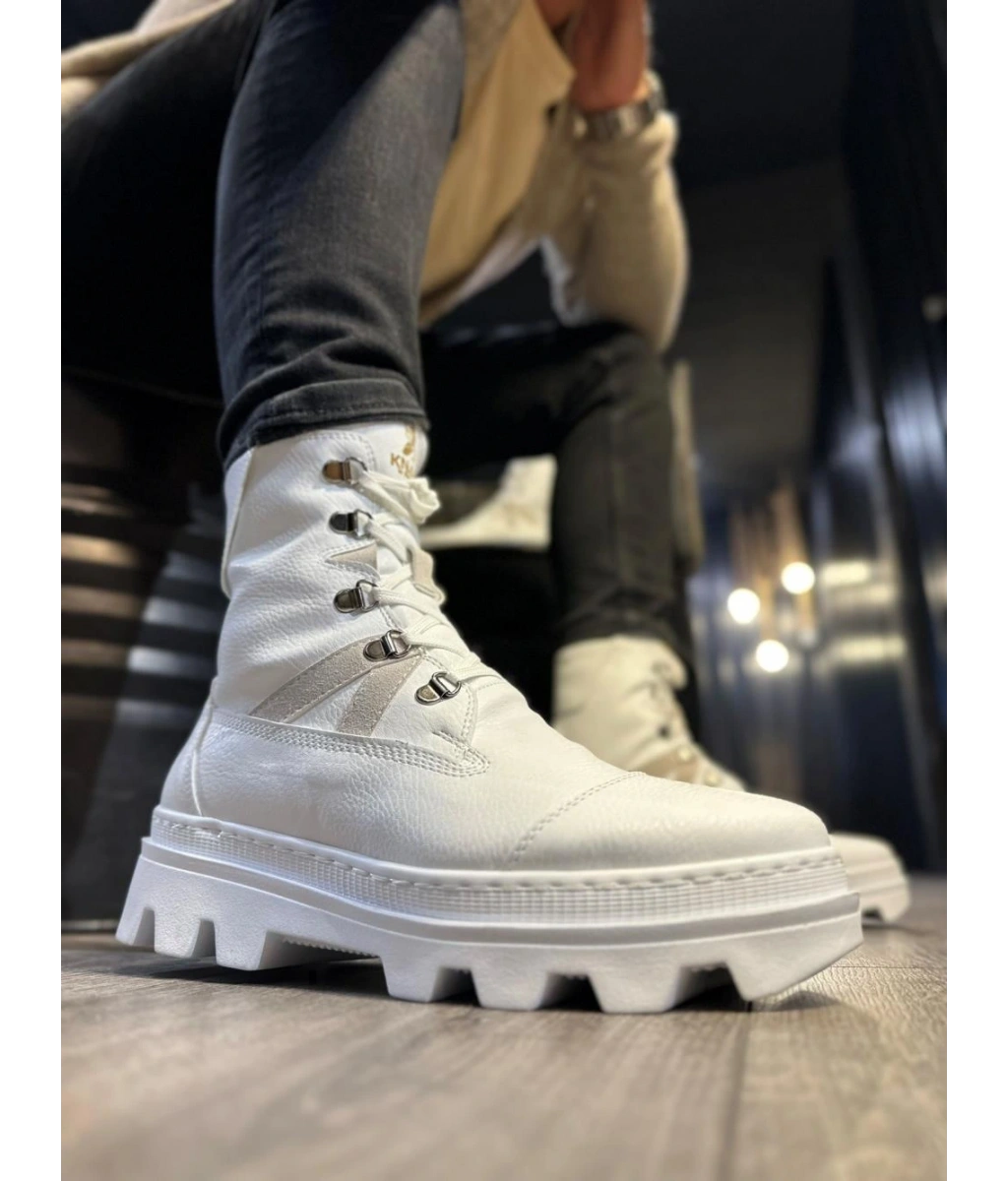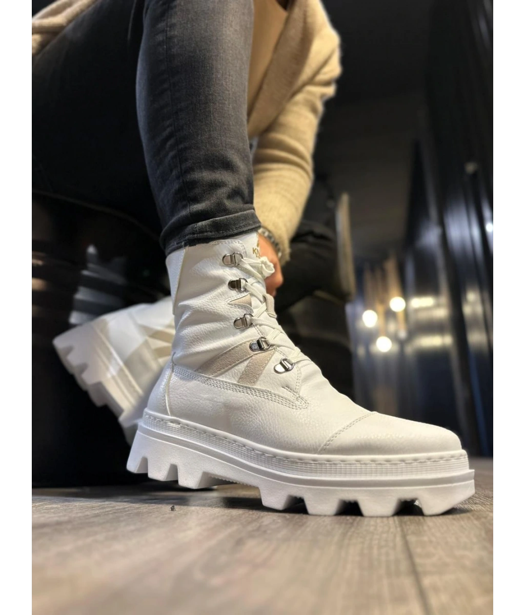 Shoecide Wg012 Beyaz Cilt Uzun Bağcıklı Bot
