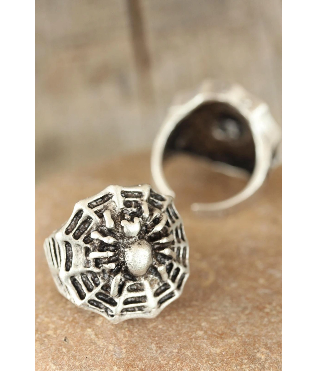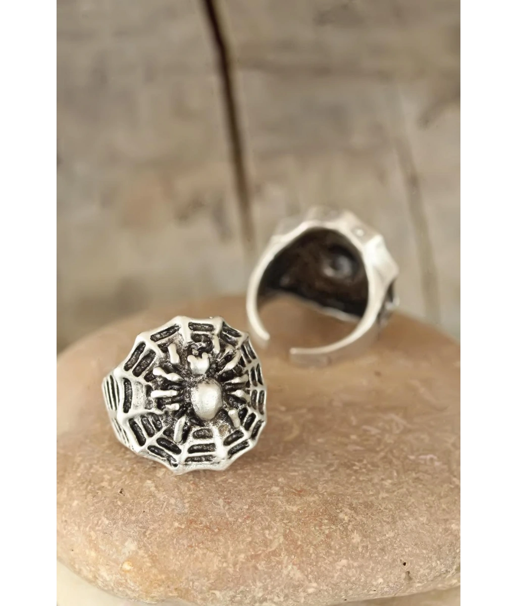 Shoecide Eskitme Gümüş Renk Örümcek Figürlü Erkek Ayarlamalı Yüzük