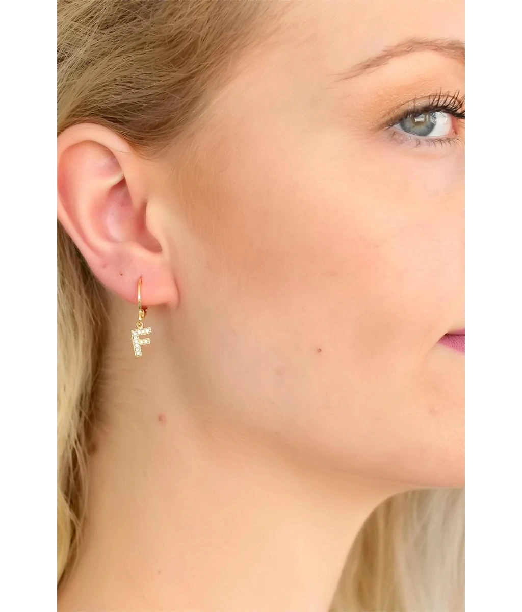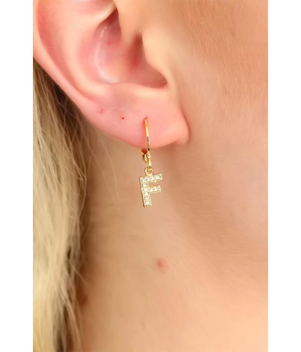Gold Renk Zirkon Taşlı F Harf Bayan Küpe
