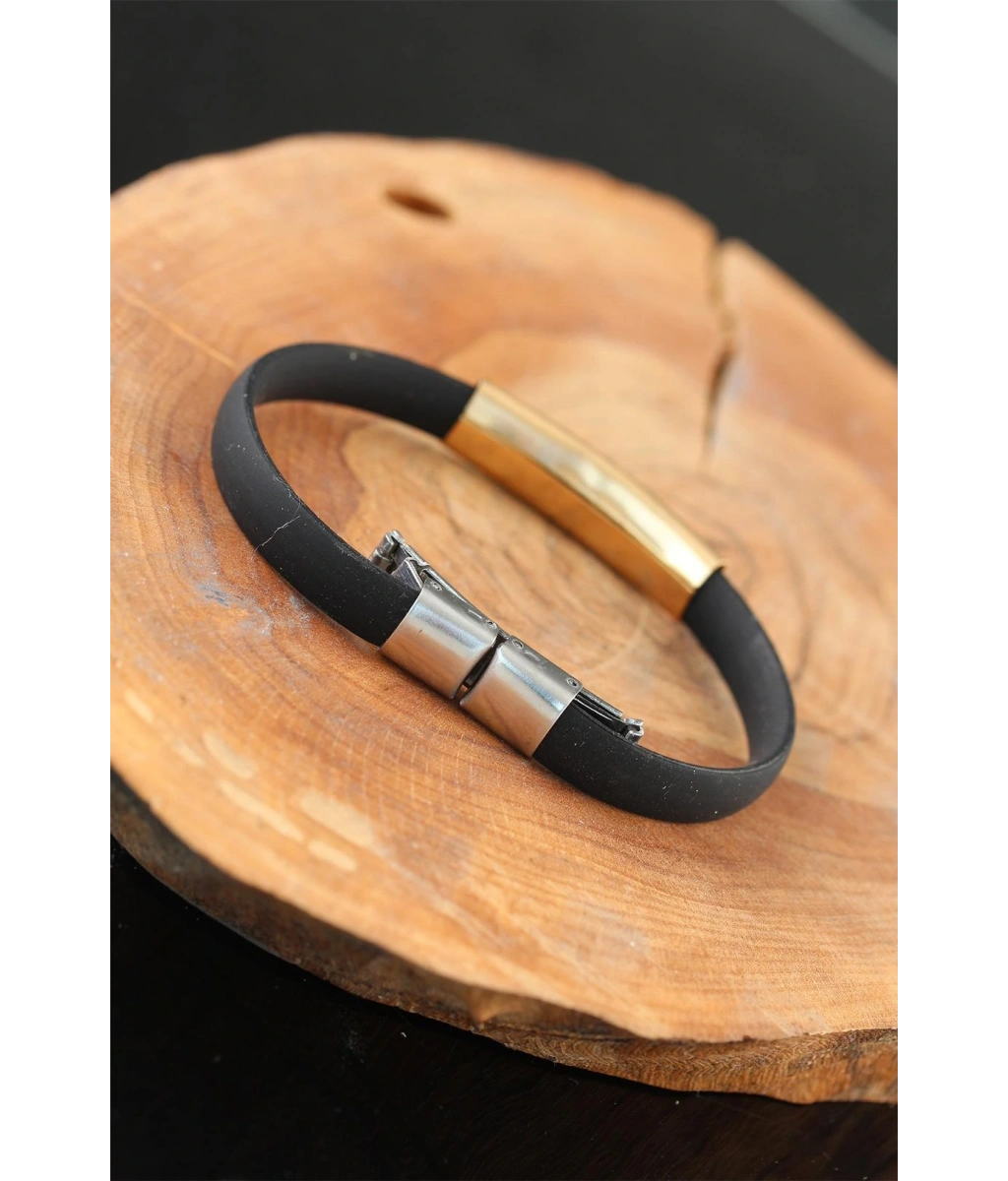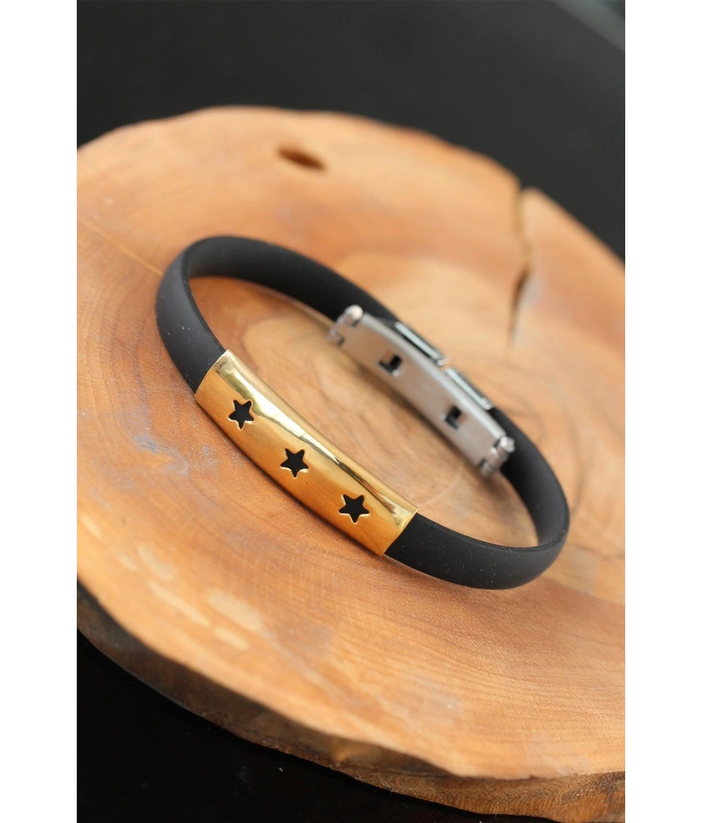 Havalı ve şık olmak için Gold Renk Çelik Yıldızlı Tasarım Siyah Renk Silikon Erkek Bileklik modeli uygun bir seçim olacak.