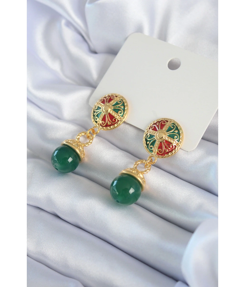 Shoecide Gold Renk Motif İşlemeli Sallantı Model Pirinç Vip Kadın Küpe