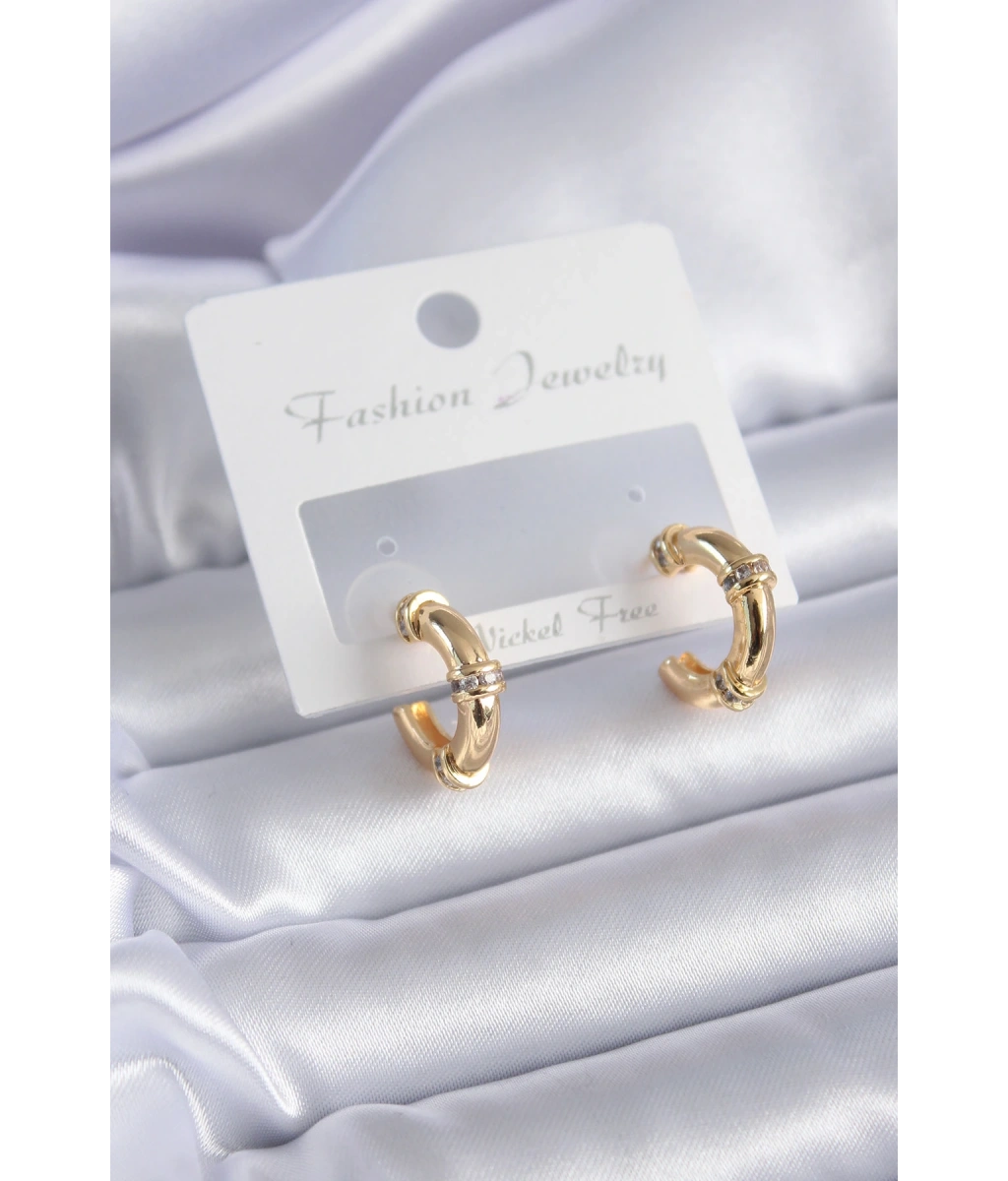 Shoecide Gold Renk Zirkon Taş Detay Halka Model Pirinç Kadın Küpe